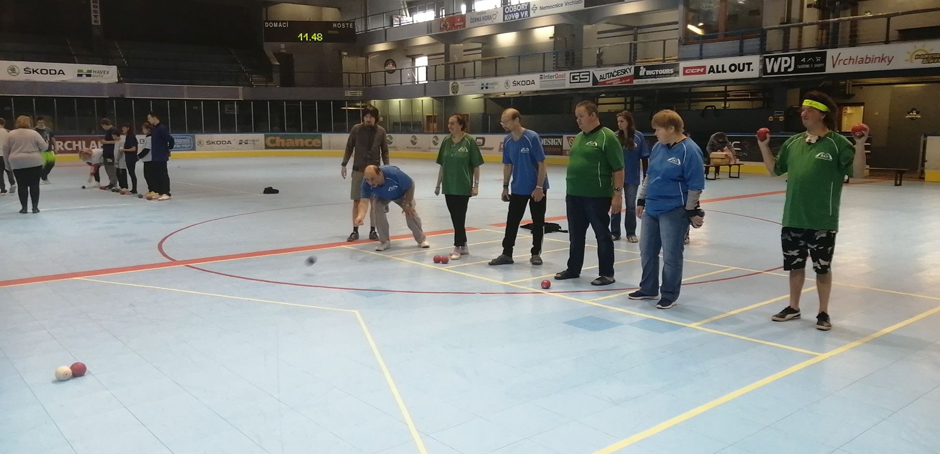 Letošní Krkonošský turnaj v boccie se konal na netradičním místě. Hokejový stadion HC Vrchlabí přivítal celkem 13 družstev, které přijely zápolit o co nejlepší umístění. Náš stacionář měl v turnaji dvojí zastoupení. V týmu Draků startovali Luděk Dvořák, Kateřina Pilařová, Luboš Csicso a Petra Voňková. Tým Kocábka, který obhajoval loňský triumf, nastoupil ve složení Marie Doležalová, Robin Teichmann, Monika Umlaufová a Radko Pavel.