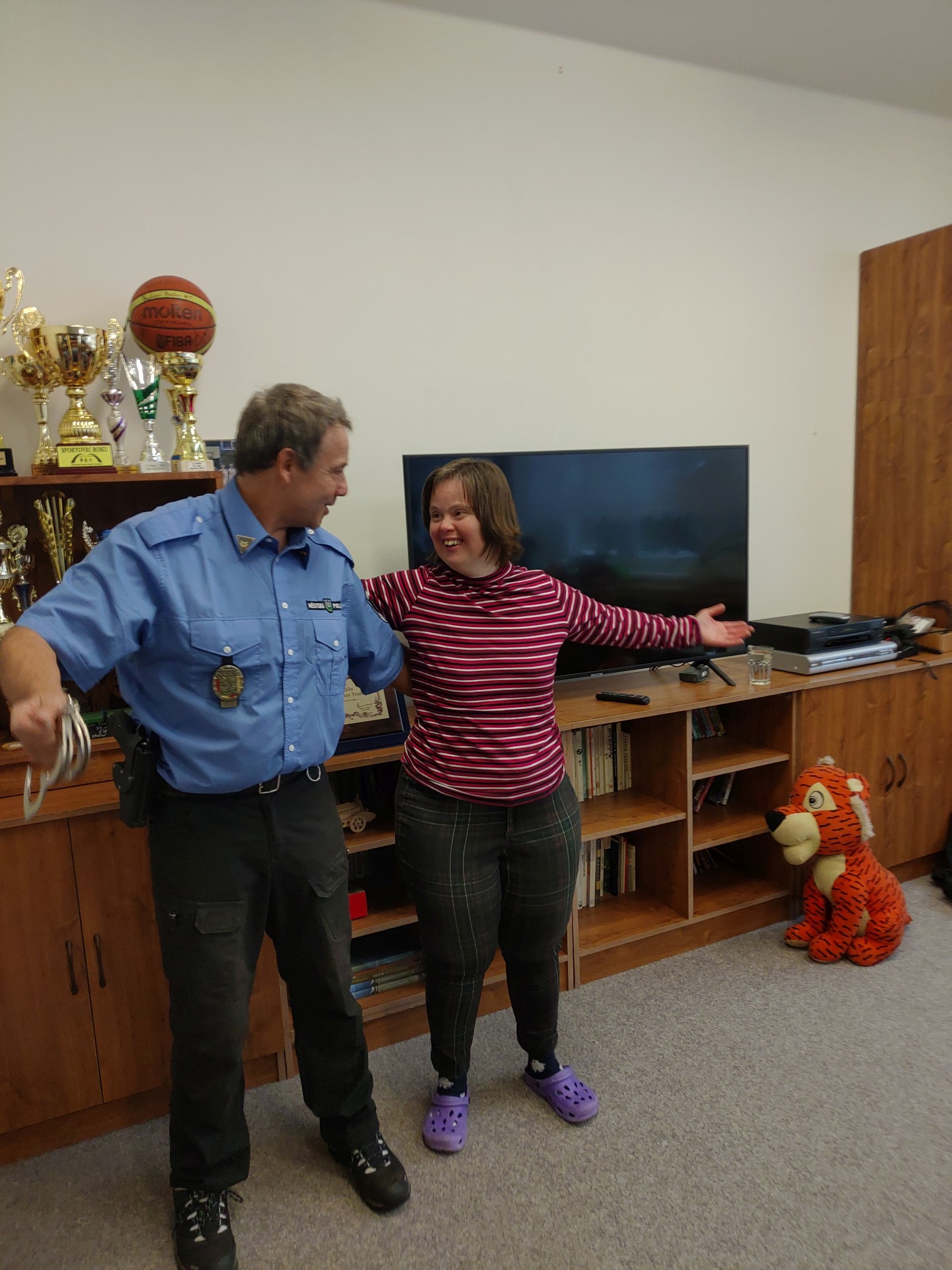 V průběhu podzimu 2022 naše klienty potěšily dvě krásné přednášky. V říjnu, v rámci Týdne sociálních služeb, navštívily stacionář paní učitelky z Vyšší odborná škola zdravotnická a Střední zdravotnická škola Trutnov. Klienti všech oddělení měli možnost prohlédnout si sanitku a pak následovala přednáška o zdraví a první pomoci. V listopadu pro zněnu navštívil stacionář preventista Městské policie Trutnov Mgr. Jan Bábik. Klienti se dozvěděli něco o práci strážníků městské policie, odvážlivci si vyzkoušeli "zatčení nanečisto", prohlédli si pouta a jiní si vyzkoušeli neprůstřelnou vestu. Velmi zajímavé byly informace o tom, jak se odchytávají zatoulaní pejsci. Součástí přednášky bylo i povídání o bezpečnosti na internetu.