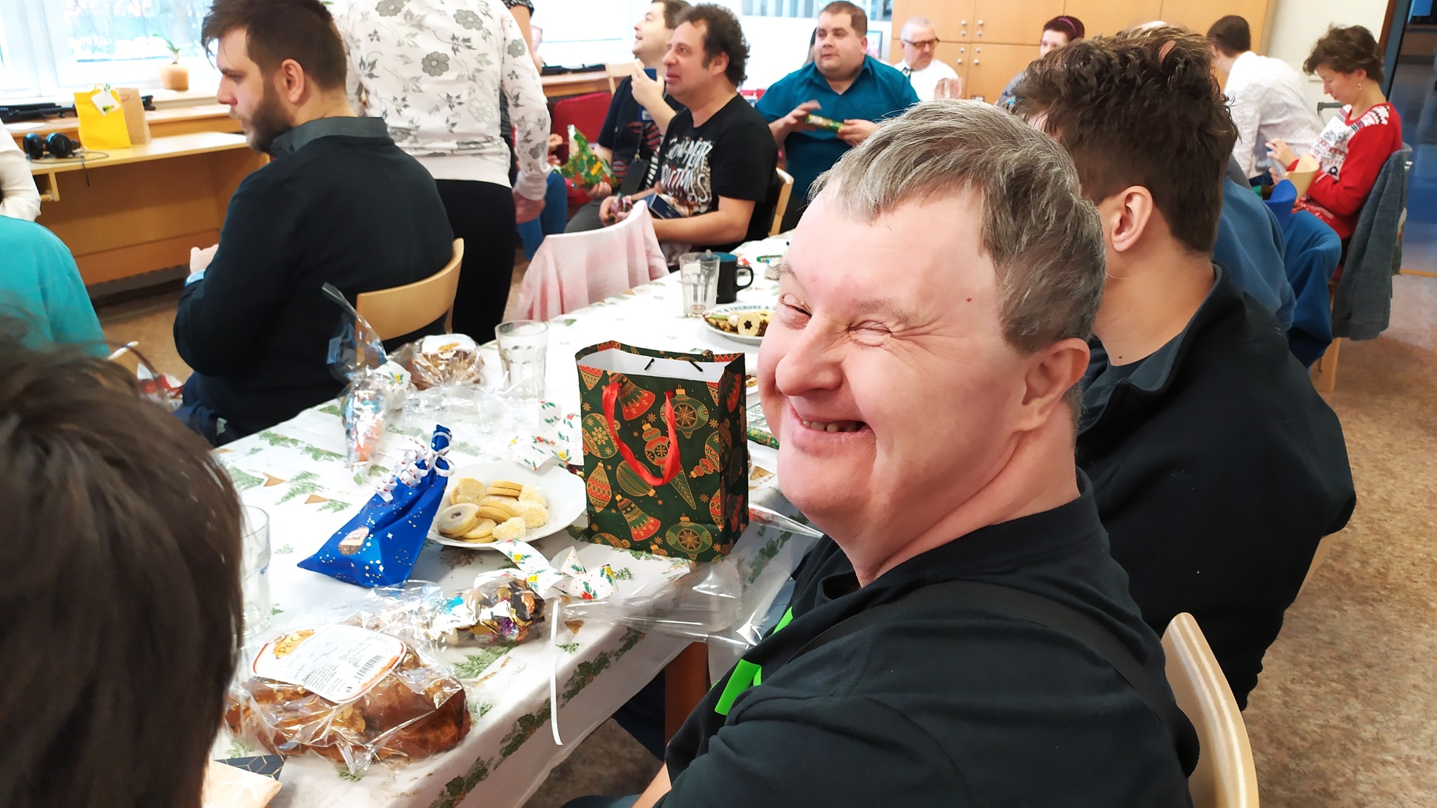 Konec roku tradičně slavíme společným posezením u stromečku, povídáním o Vánocích, zpíváním koled, sledováním vánočních pohádek a rozdáváním dárečků. Rozdalo se mnoho dárků, které přinesly mnoho radosti. Od stacionáře klienti také dostali nějaký ten malý dáreček - pralinkový kornout. Na všechny také čekala vánočka a slavnostní oběd. Bylo krásné se setkat. ?