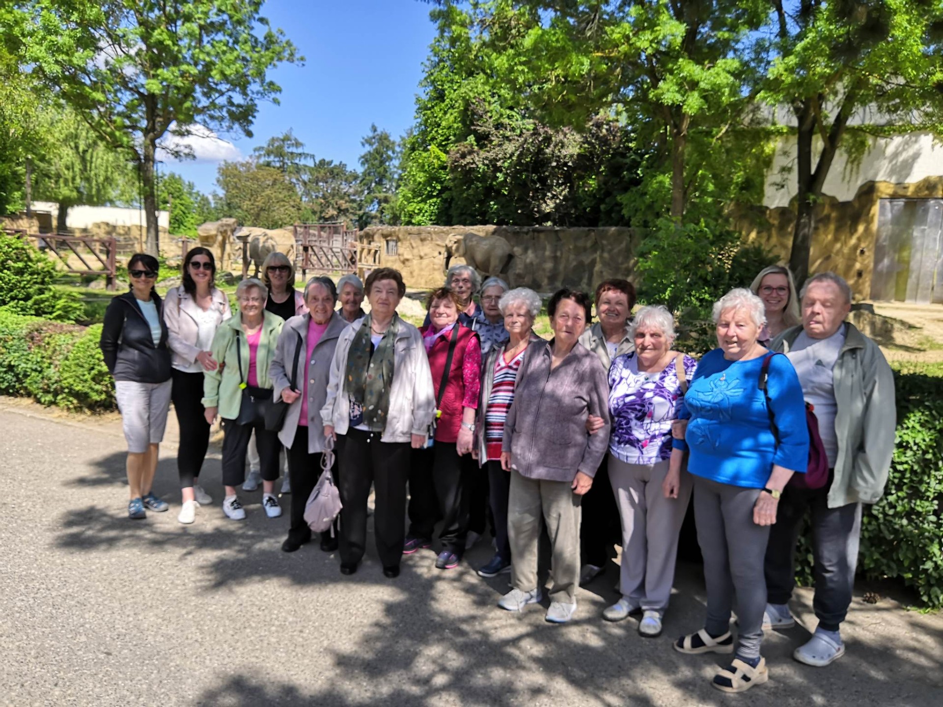 V úterý 30.5.2023 navštívili senioři z oddělení C zoologickou zahradu ve Dvoře Králové nad Labem. Tento výlet se stal již každoroční tradicí. Od stacionáře vyjel autobus v 9 hodin a hned poté jsme se vydali směr Dvůr. Chvíli trvalo, než jsme z autobusu vyndali všechna chodítka a vozíky, ale do Safari busu jsme je nepotřebovali. Ten nás provezl po zahradě. Zvířata se zrovna probouzela a tak jsme jich tentokrát viděli opravdu hodně. Řidič a zároveň průvodce nám o zvířatech moc pěkně povídal a my se dozvěděli mnoho zajímavostí. Po projížďce Safari jsme se vydali ve dvou skupinkách prohlédnout výběhy dalších zvířat. Procházkou jsme došli až k restauraci U lemura, kde na nás čekal oběd. Tentokrát jsme si pochutnali na vývaru s nudlemi, bramborové kaši a kuřecím řízku. Nechyběla ani kávička po obědě. Cestou zpět bylo v autobuse úplné ticho. Všichni byli příjemně unavení, ale moc spokojení. Tak zase za rok…na viděnou v ZOO.