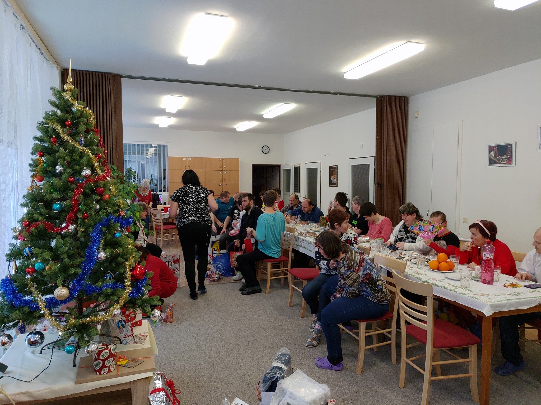 Konec roku tradičně slavíme společným posezením u stromečku, povídáním o Vánocích, zpíváním koled, sledováním vánočních pohádek a rozdáváním dárečků. Rozdalo se mnoho dárků, které přinesly mnoho radosti. Od stacionáře klienti také dostali nějaký ten malý dáreček - pralinkový kornout. Na všechny také čekala vánočka a slavnostní oběd. Bylo krásné se setkat. ?
