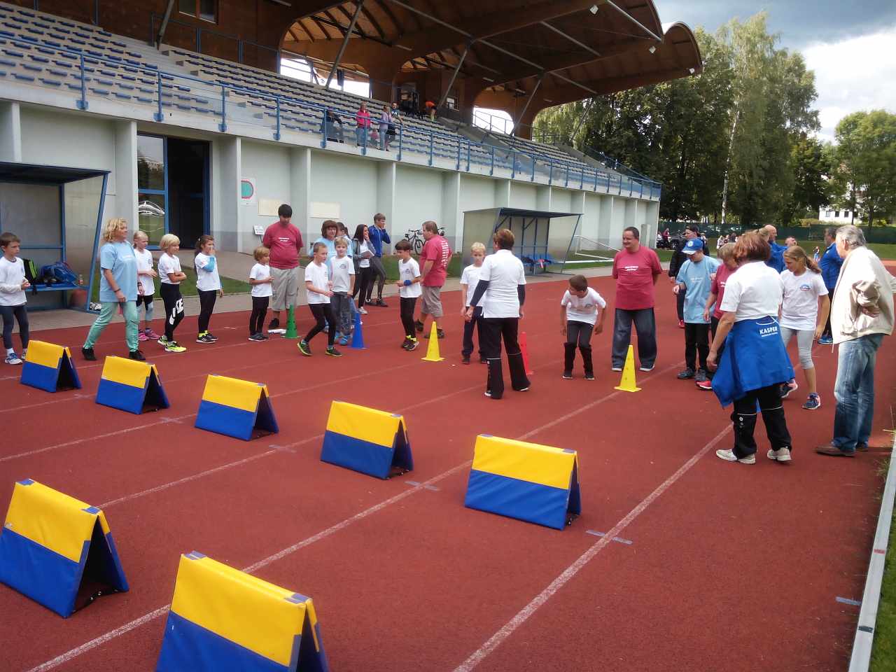 V pondělí 4.9.2017 odpoledne se někteří klienti a pracovníci stacionáře zúčastnili velké sportovní akce na trutnovském stadiónu a v jeho okolí. Prezentovalo se tu 35 různých sportovních oddílů a některé z těchto sportů bylo možno si i vyzkoušet. Toho jsme samozřejmě využili a tak už víme, jaké to je startovat z bloků, běžet po tartanu, házet na cíl, proběhnout překážkovou dráhu, skákat do dálky nebo třeba odpalovat baseballové míčky. Na spoustu dalších sportů jsme se však jen dívali – třeba na kanoistiku, thajský box, judo, MTB cyklisty, americký fotbal, gymnastiku, lyžaře i bruslaře... Na závěr jsme dostali od pana Poula a ostatních pořadatelů ještě buřtíka a dárky a tak jsme odcházeli spokojeni s pěkně prožitým odpolednem.