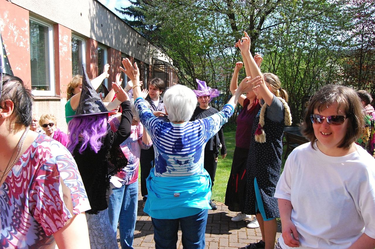 Ve čtvrtek 25.4.2018 byl celý stacionář ve znamení Čarodějnického reje. Na zahradě jsme se sešli úplně všichni. I počasí nám přálo, takže jsme mohli rejdit celé dopoledne.