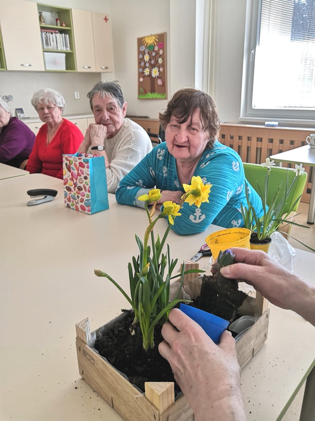 narozeninových dnů. Senioři si zkusili zahrát florbal a tím si připomněli právě probíhající olympijské hry. Sledovali jsme výkony našich sportovců a fandili jim. Pak následoval Masopust a vyprávění o tradicích tohoto svátku. A protože nám na našich procházkách čím dál častěji svítí sluníčko, rozhodli jsme se pro zahradničení. Pod odborným vedením proběhlo sázení semínek bylin a měsíčních jahod. Nyní budeme zalévat a netrpělivě sledovat, jak nám to poroste. Veliký úspěch měla také návštěva základní školy Mládežnická, kde se konala výstava stavebnice Lego. Krásné a často velmi propracované výtvory obdivovali všichni, nejen děti. Nechybělo připomenutí Mezinárodního dne žen. I na Oddělení B se stále něco děje. Trénování jemné motoriky, komunikace a sebepéče patří mezi každodenní aktivity stejně jako procházka. Také nechyběla oslava narozenin a povídání o Masopustu. Pracovnice také pro klienty připravily několik tematických vycházek. Navštívili turistické centrum v Trutnově, zkusili poslat balík a prošli si historickou část centra. Ve stacionáři je pak čekalo opakování čtení, psaní, počítání, komunikace a spoustu dalších her.
