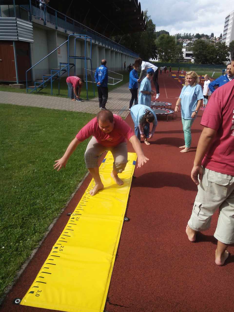 V pondělí 4.9.2017 odpoledne se někteří klienti a pracovníci stacionáře zúčastnili velké sportovní akce na trutnovském stadiónu a v jeho okolí. Prezentovalo se tu 35 různých sportovních oddílů a některé z těchto sportů bylo možno si i vyzkoušet. Toho jsme samozřejmě využili a tak už víme, jaké to je startovat z bloků, běžet po tartanu, házet na cíl, proběhnout překážkovou dráhu, skákat do dálky nebo třeba odpalovat baseballové míčky. Na spoustu dalších sportů jsme se však jen dívali – třeba na kanoistiku, thajský box, judo, MTB cyklisty, americký fotbal, gymnastiku, lyžaře i bruslaře... Na závěr jsme dostali od pana Poula a ostatních pořadatelů ještě buřtíka a dárky a tak jsme odcházeli spokojeni s pěkně prožitým odpolednem.