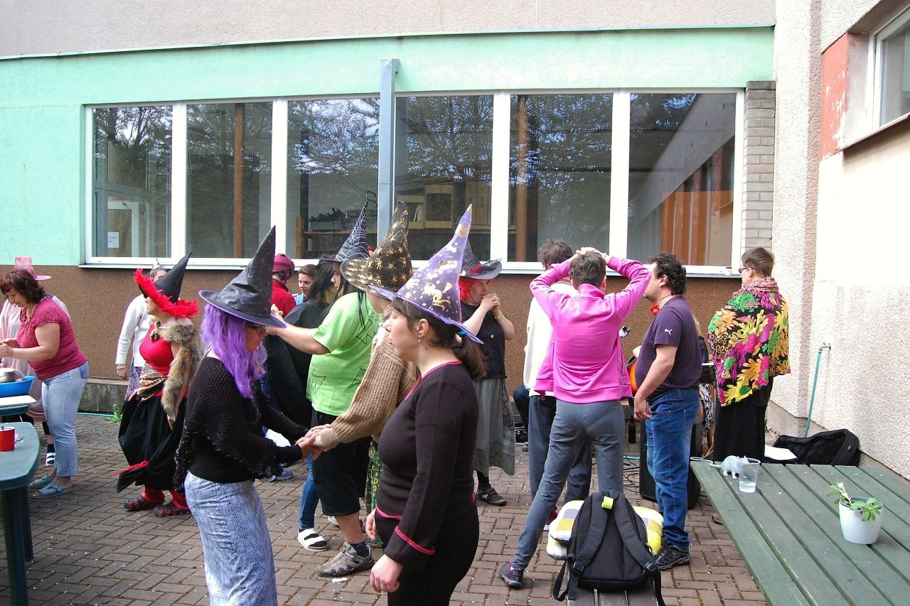 Ve čtvrtek 25.4.2018 byl celý stacionář ve znamení Čarodějnického reje. Na zahradě jsme se sešli úplně všichni. I počasí nám přálo, takže jsme mohli rejdit celé dopoledne.