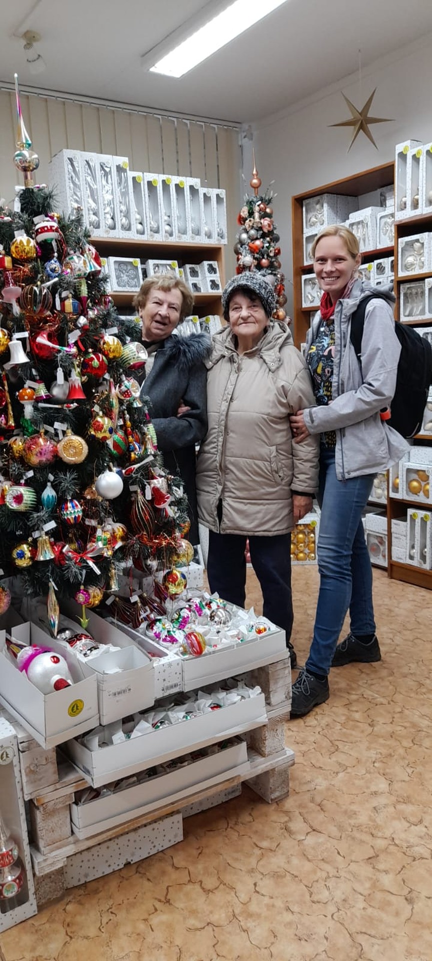 Oddělení C čekalo v předvánočním čase mnoho aktivit. Začaly hned v úterý 14.11.2023. Po svačině senioři nastoupili do malého autobusu a společně se vydali do Dvora Králové nad Labem. Po nákupech v prodejně Družstva – vánoční ozdoby Dvůr Králové nad Labem jsme prošli provoz. Měli jsme možnost shlédnout výrobu vánočních ozdob od samotného počátku, tj. od vyfouknutí tvaru až po dokreslení a samotné zabalení. Týden na to ve středu 22.11.2023 jsme si zpestřili den návštěvou kina Vesmír v Trutnově. Pro všechny to byl nevšední zážitek, protože většina ze seniorů nebyla v kině již několik let. Navíc si v nově zrekonstruovaném kině shlédli pohádku Princezna se zlatou hvězdou na čele, což v tomto předvánočním čase byla ideální volba.