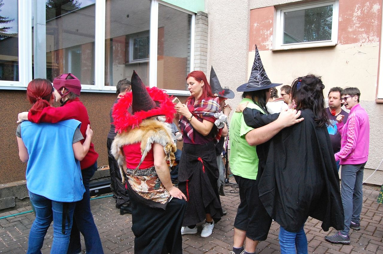 Ve čtvrtek 25.4.2018 byl celý stacionář ve znamení Čarodějnického reje. Na zahradě jsme se sešli úplně všichni. I počasí nám přálo, takže jsme mohli rejdit celé dopoledne.