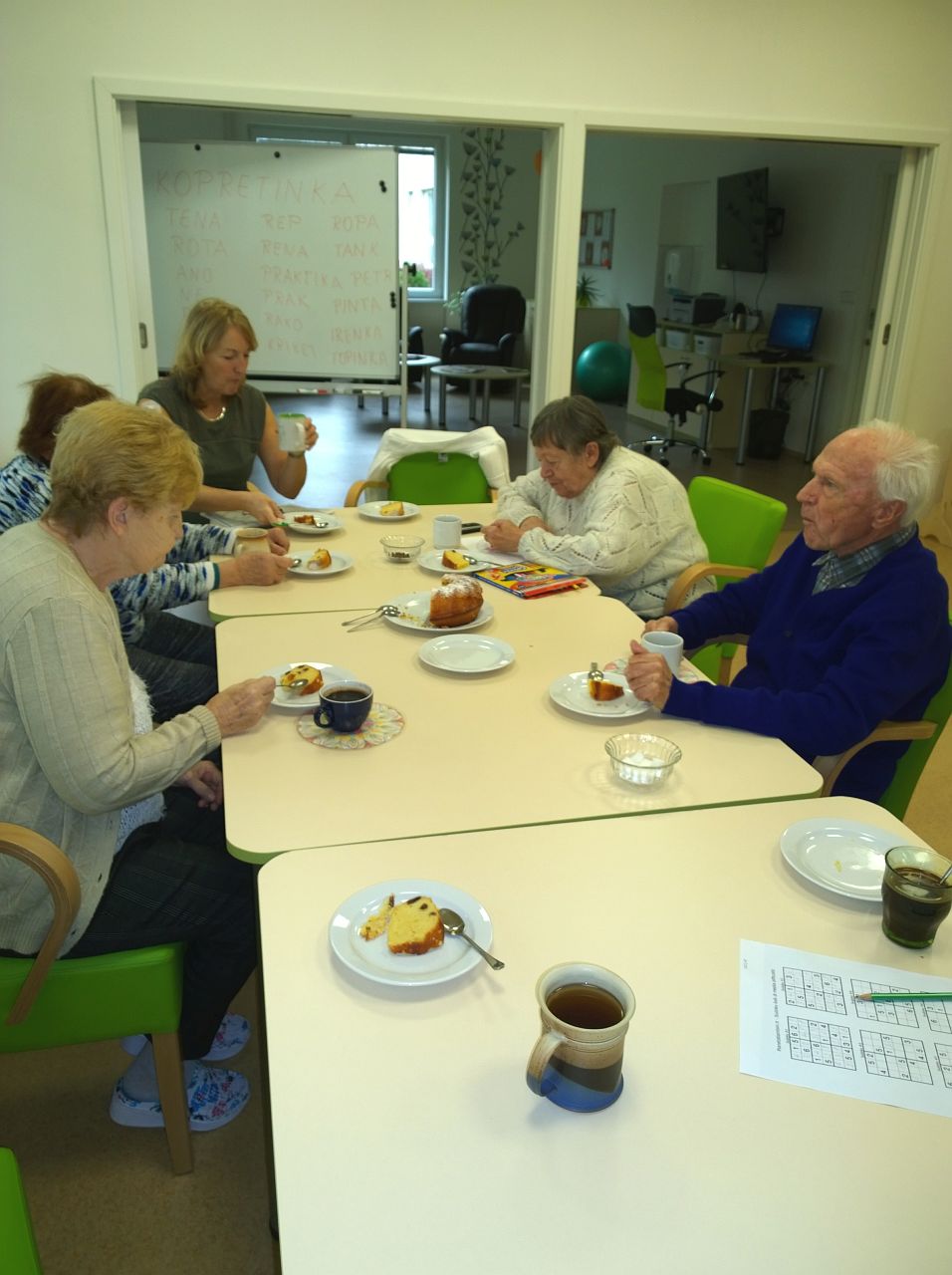 Sluníčko se schovalo za mraky, teplota klesla právě pod ten bod, kdy už se nedá příjemně sedět venku na terase, ale seniorům z oddělení C to nevadí. Rozhodli se totiž, že si sychravé podzimní dny zpříjemní pečením moučníků k odpolední kávě. A tak si občas pochutnají na perníku, bábovce nebo jiné sladkosti.