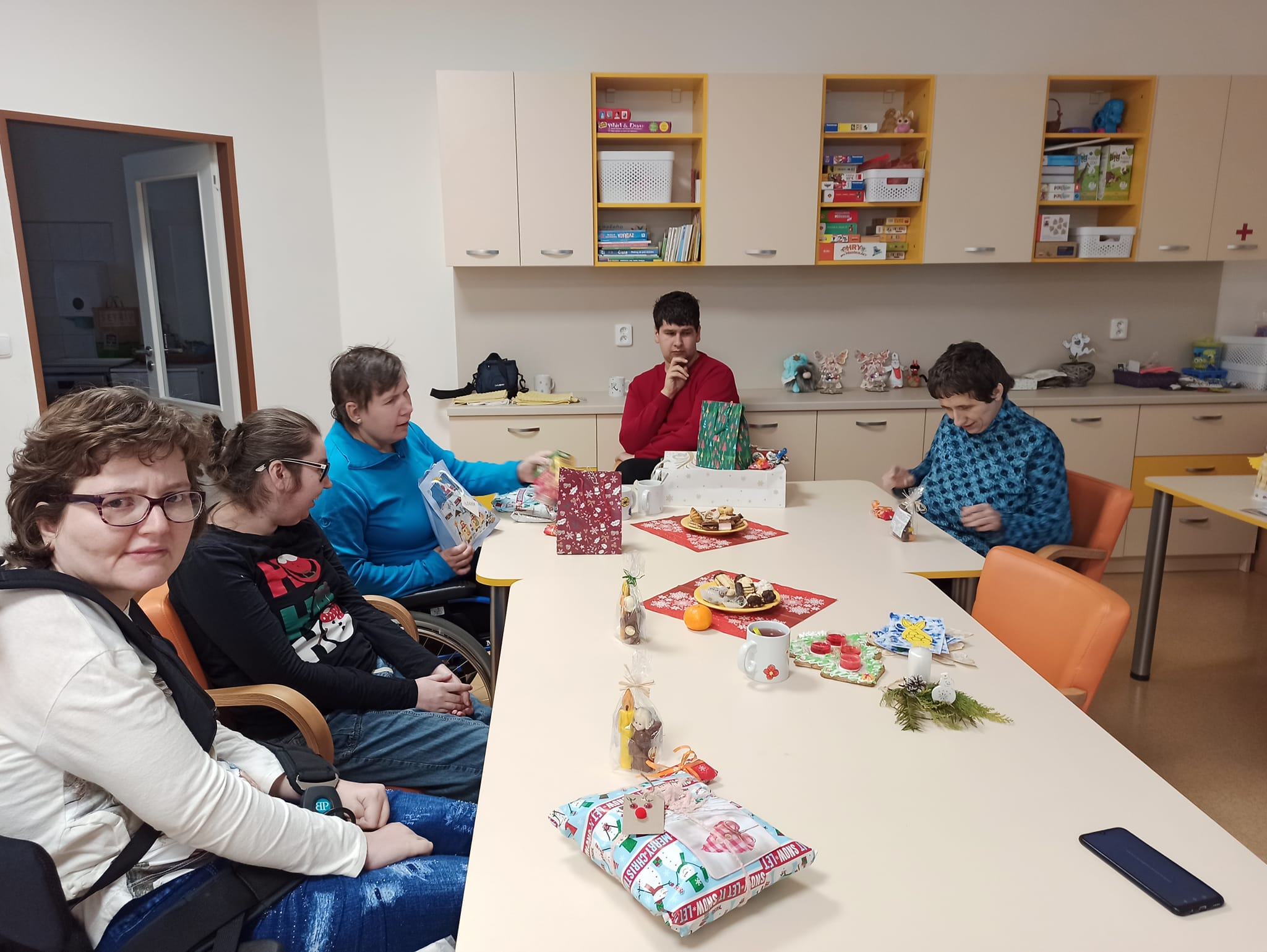 Každý rok se tradičně loučíme se starým rokem společným posezením, zpíváním koled, povídáním si u stromečku a rozbalováním dárků. Letos Ježíšek přinesl drobné dárečky pro všechny klienty i pracovníky.