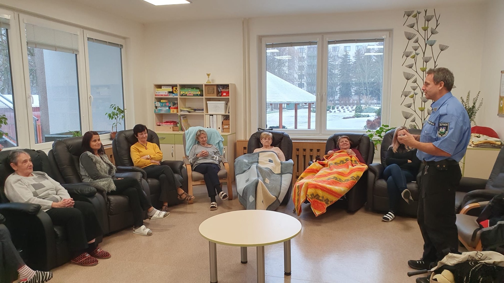V průběhu podzimu 2022 naše klienty potěšily dvě krásné přednášky. V říjnu, v rámci Týdne sociálních služeb, navštívily stacionář paní učitelky z Vyšší odborná škola zdravotnická a Střední zdravotnická škola Trutnov. Klienti všech oddělení měli možnost prohlédnout si sanitku a pak následovala přednáška o zdraví a první pomoci. V listopadu pro zněnu navštívil stacionář preventista Městské policie Trutnov Mgr. Jan Bábik. Klienti se dozvěděli něco o práci strážníků městské policie, odvážlivci si vyzkoušeli "zatčení nanečisto", prohlédli si pouta a jiní si vyzkoušeli neprůstřelnou vestu. Velmi zajímavé byly informace o tom, jak se odchytávají zatoulaní pejsci. Součástí přednášky bylo i povídání o bezpečnosti na internetu.