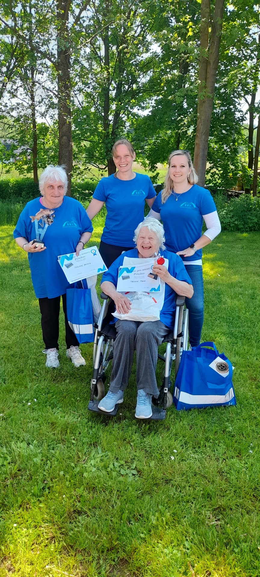 Je krásné čtvrteční dopoledne a z odd. C vychází skupinka ve sportovním oblečení. Co se děje? To dvě zástupkyně našich seniorů s doprovodem vyrážejí reprezentovat náš stacionář na Sportovní den v Domově pro seniory v Pilníkově. Po krásném uvítání, skvělém občerstvení a v bezva náladě se naše klientky utkaly v konkurenci 22 soupeřů z celkem 11 zařízení z okolí ve třech disciplínách - závěsném kuželníku, chytání rybiček a jízdě zručnosti. A jak jsme v našich prvních sportovních hrách uspěli? Paní Daniela neměla konkurenci v chytání rybek a získala 1. místo. Paní Marie po napínavém rozstřelu uhájila 3. místo v kuželkách.