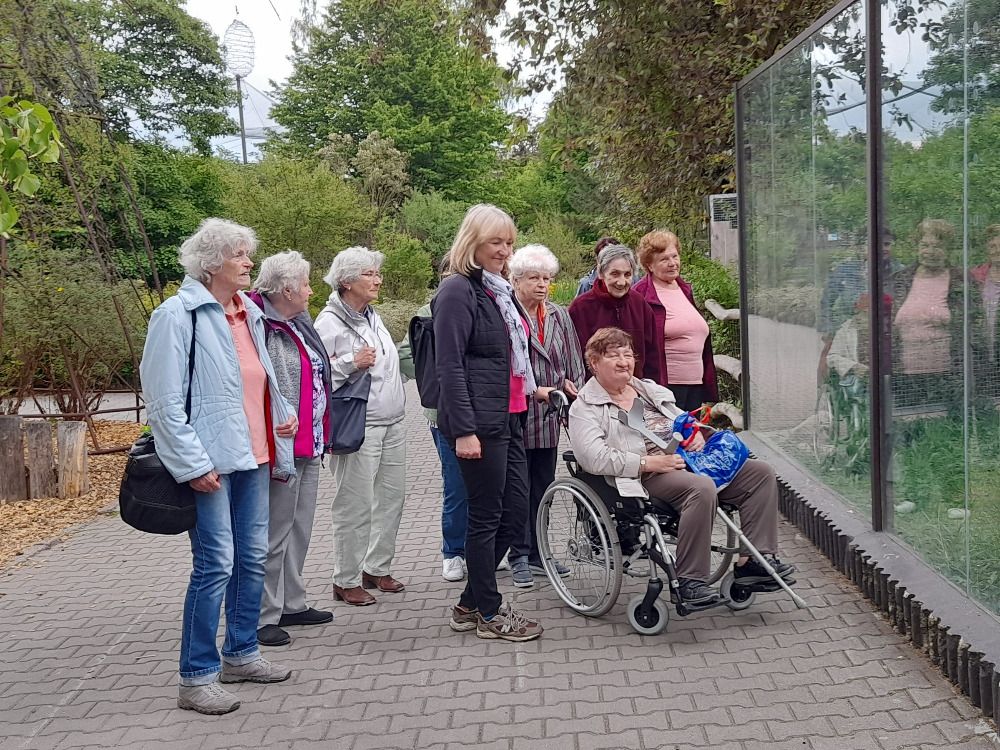 Letošní návštěvu Zoologické zahrady ve Dvoře Králové nad Labem jsme podnikli již v květnu. A rozhodli jsme se dobře, protože nám vyšlo nádherné počasí. V úterý 24.5.2022 se vydalo 17 seniorů a 3 klienti oddělení B na poznávací výlet po Safari v zoologické zahradě. Během 45 minutové jízdy otevřeným autobusem jsme měli možnost potkat spoustu zvířat, včetně antilop, žiraf, afrických krav, ptáků, pštrosů a mnoho dalších druhů. Pracovník zahrady nám poutavě vyprávěl a my jsme se dozvěděli mnoho zajímavostí. Poté jsme se klidným tempem přemístili do restaurace U lemura, kde na nás čekal výborný oběd. Ale cestou jsme stačili pozdravit opice, slony, hrošíky, okapi, želvy další zvířata. Po dobrém obědě jsme se museli bohužel se zahradou rozloučit a přislíbit, že se sem opět brzy moc rádi vrátíme. A začalo pršet až odpoledne, což nám vůbec nevadilo. Plni zážitků jsme se vydali do svých domovů a všem o tom vyprávěli. Prostě prima den.