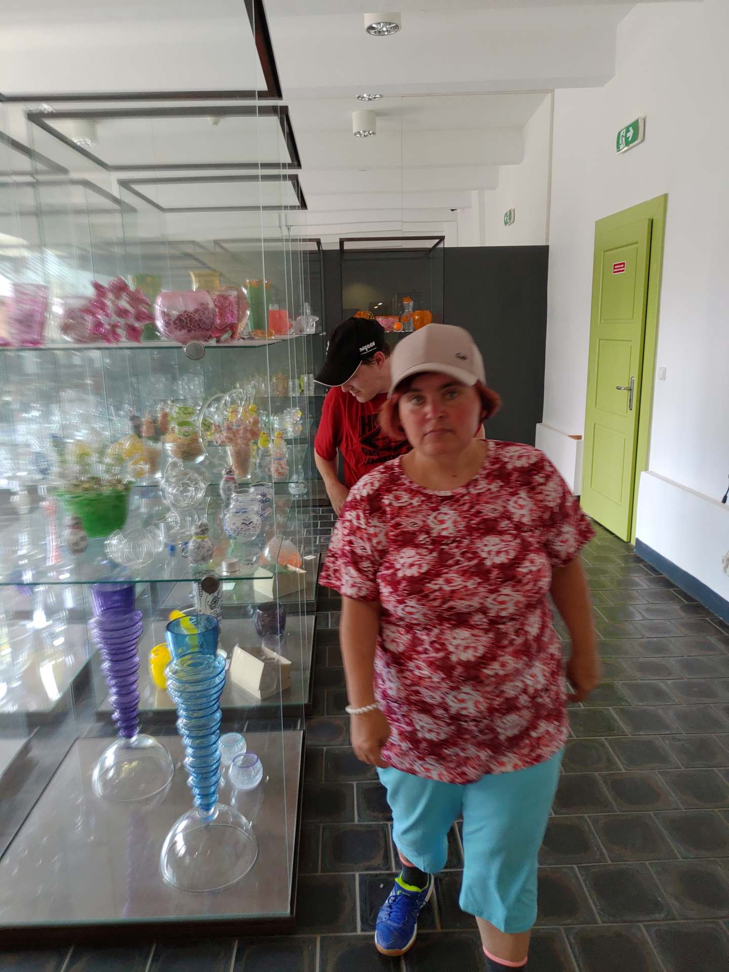 Ve čtvrtek byl naplánovaný společný výlet do města Sázava. Sluníčko ale tak neúprosně pálilo, že všichni rádi vyměnili vycházku po městě za posezení u zmrzliny, kávy a zákusku. Po ochutnání místních dobrot se vydala celá skupina do Hutě František – centra sklářského umění. Zde byl objednán workshop - zdobení sklenic metodou pískování a prohlídka s průvodcem. Je až podivuhodné, jaké krásy jdou ze skla vyrobit.