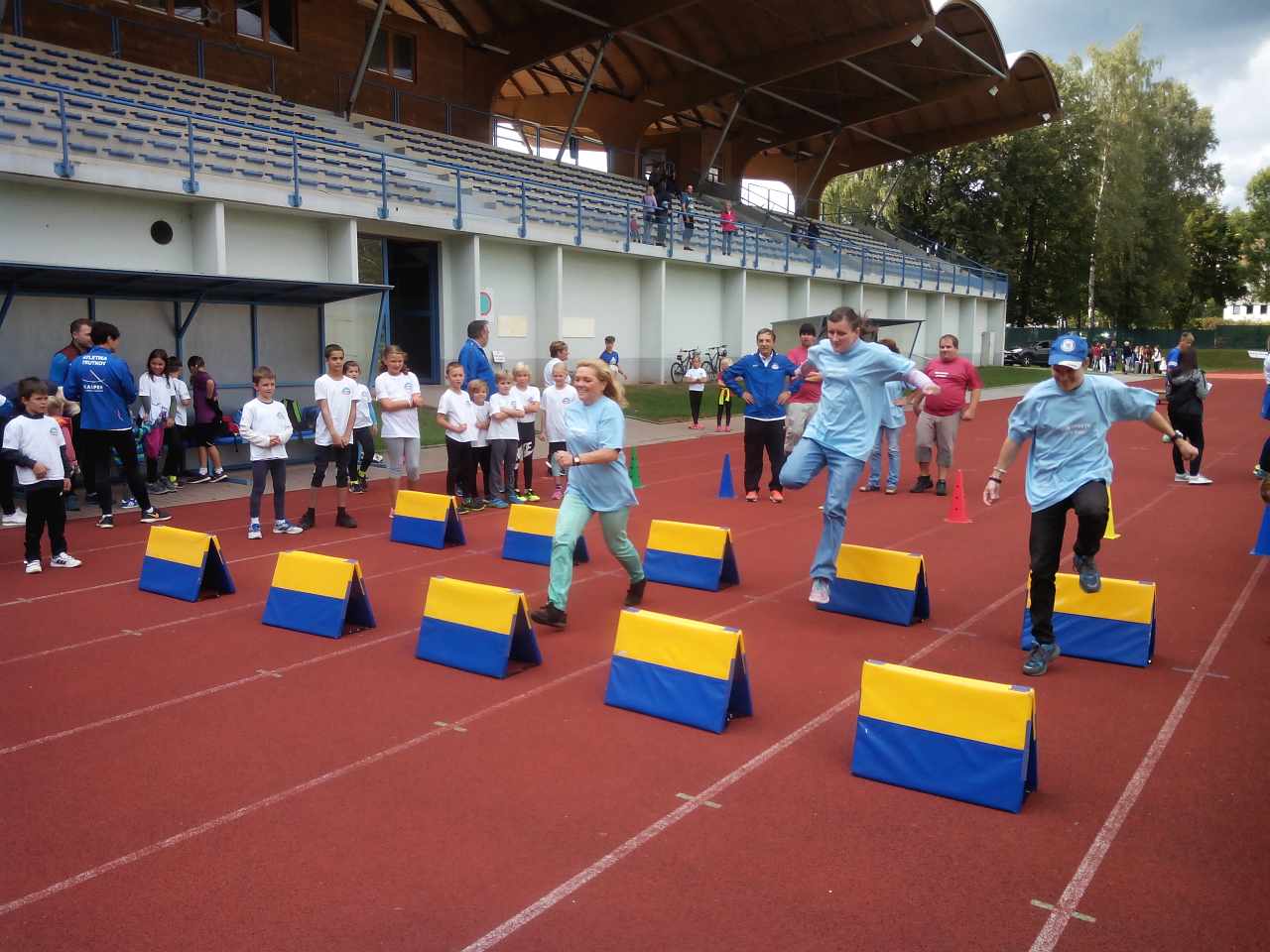 V pondělí 4.9.2017 odpoledne se někteří klienti a pracovníci stacionáře zúčastnili velké sportovní akce na trutnovském stadiónu a v jeho okolí. Prezentovalo se tu 35 různých sportovních oddílů a některé z těchto sportů bylo možno si i vyzkoušet. Toho jsme samozřejmě využili a tak už víme, jaké to je startovat z bloků, běžet po tartanu, házet na cíl, proběhnout překážkovou dráhu, skákat do dálky nebo třeba odpalovat baseballové míčky. Na spoustu dalších sportů jsme se však jen dívali – třeba na kanoistiku, thajský box, judo, MTB cyklisty, americký fotbal, gymnastiku, lyžaře i bruslaře... Na závěr jsme dostali od pana Poula a ostatních pořadatelů ještě buřtíka a dárky a tak jsme odcházeli spokojeni s pěkně prožitým odpolednem.
