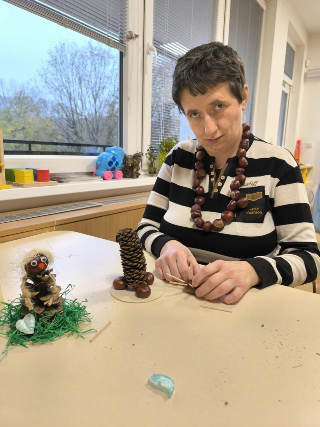 Podzim letošního roku přál jak vycházkám po Trutnově, který se oblékl do krásného barevného kabátku, tak i aktivitám v naší budově. Podzim se svým proměnlivým počasím nám přinesl spoustu inspirace. Byl čas na různorodé aktivity, podzimní tvoření, muzikoterapii a klientům oddělení A také odstartovala kuželkářská liga.