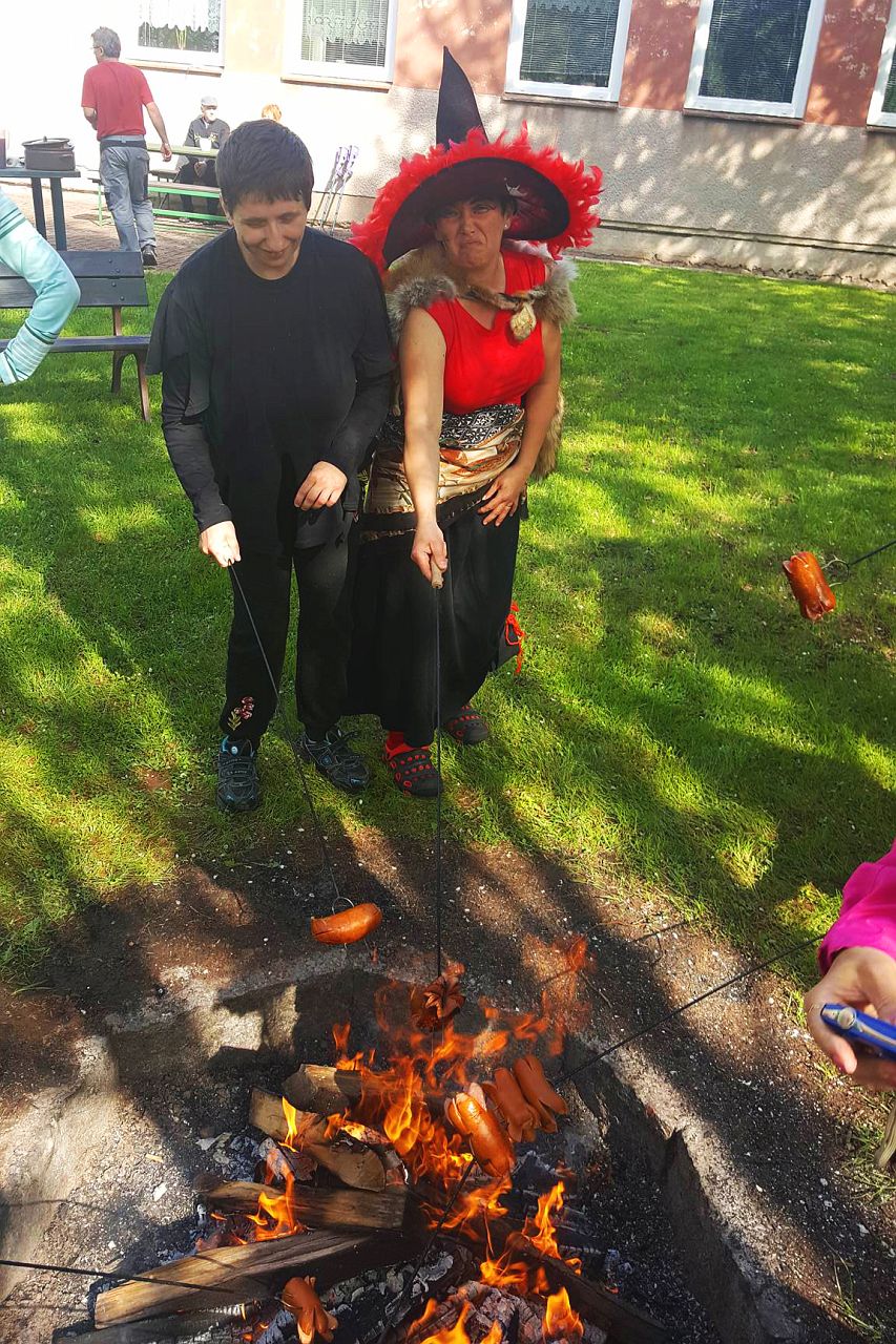Odměnou nám všem byl pořádný opečený buřt na ohni. Nechyběla pravá táboráková nálada při kytarách a zpěvu. Nakonec jsme tancovali a rejdili všichni v maskách i bez nich.
