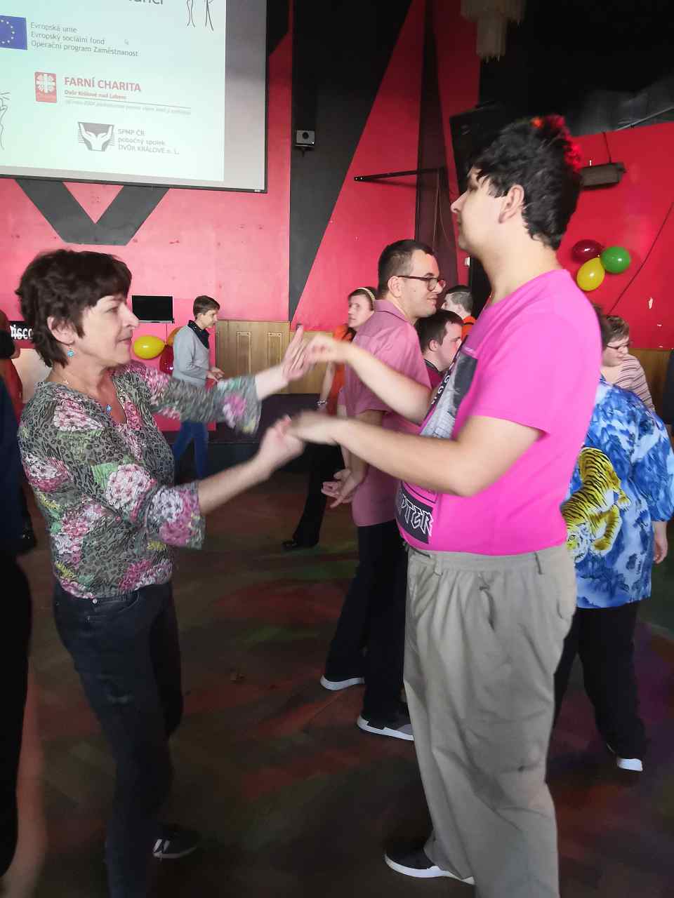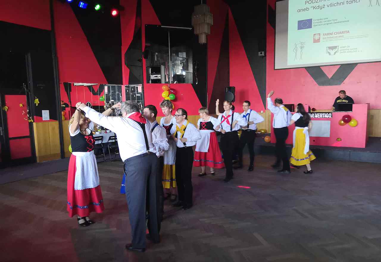 Ve čtvrtek 14.11.2019 se klienti z oddělení A a B zúčastnili Podzimní taneční zábavy, kterou pořádalo SPMP ve spolupráci s Farní Charitou Dvůr Králové nad Labem. Na tuto akci se všichni klienti moc těšili. Naši tanečníci ze skupiny Pistolníci na zábavě ukázali kamarádům své taneční vystoupení "Baruška", které sklidilo velký potlesk. Akci si užili nejen tanečníci,ale i ostatní klienti, doprovázející rodiče i pracovníci stacionáře.