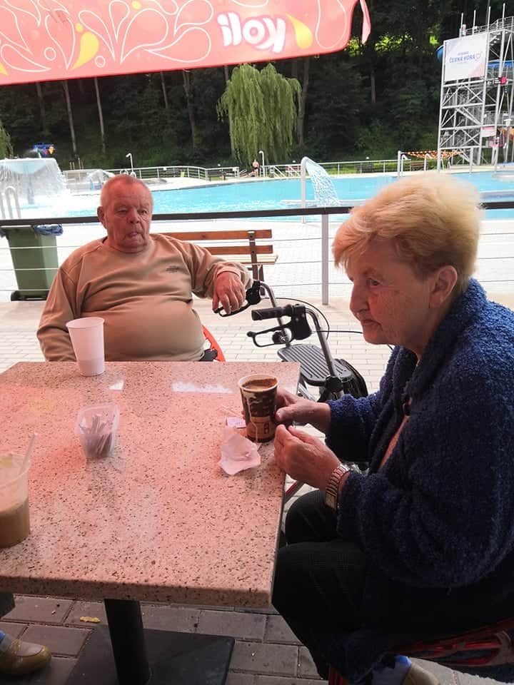 I v době letních dovolených naši klienti využívají plně služby stacionáře. Červencové krásné počasí lákalo k vycházkám, práci i odpočinku na zahradě. Klienti často chodili na vycházky do města, nebo cukrárny na zmrzlinu, kávu a dortík. Někteří společně s pracovnicemi navštívili také výstavu panenek a kočárků v městském muzeu. Jiní si zašli protáhnout těla na lesní sportoviště, nebo na prohlídku nově otevřeného letního koupaliště.