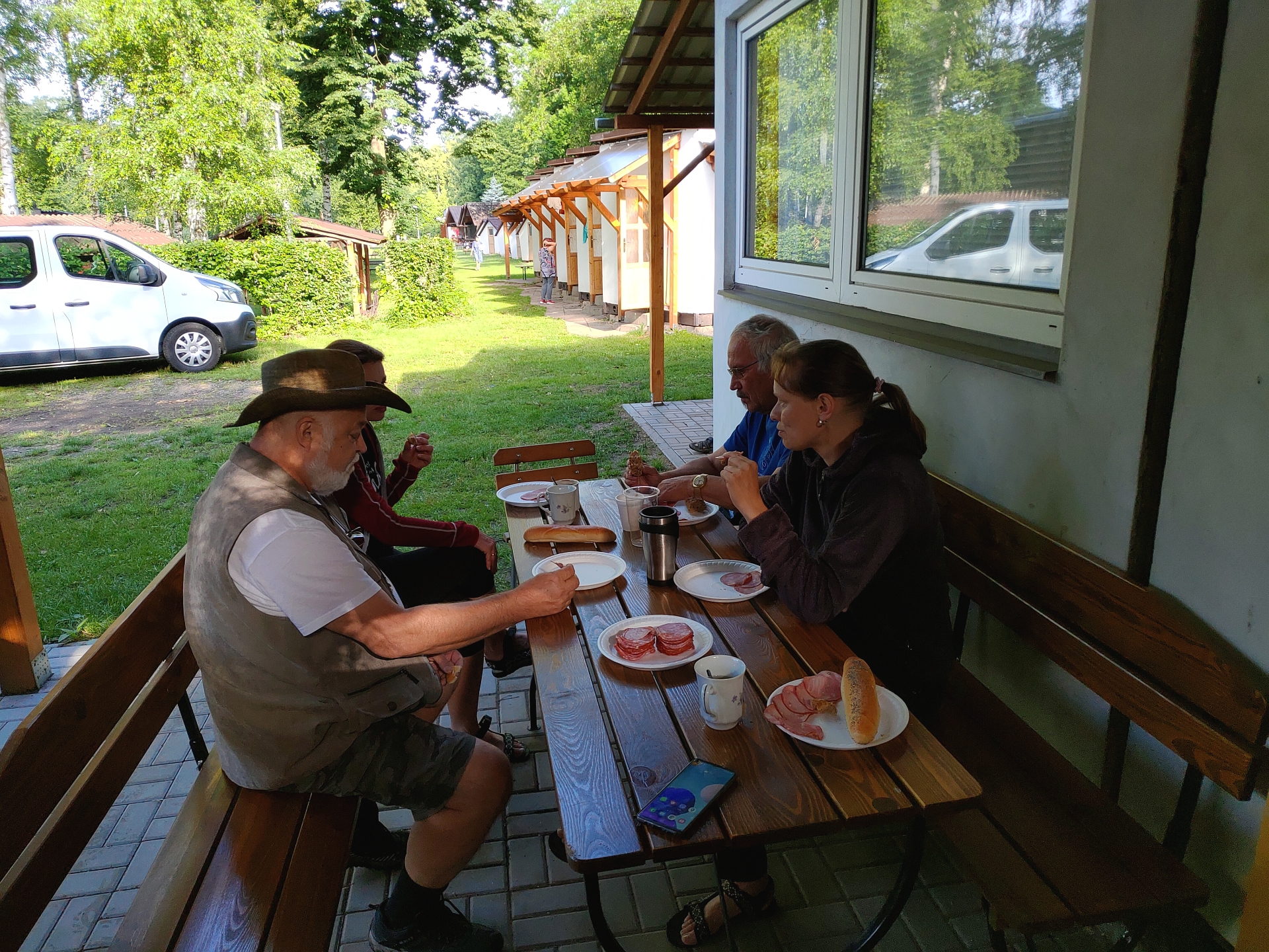 Již po čtrnácté klienti oddělení A zvedli kotvy a vypluli. Ve středu 30. 6. v 9:40 odjel z vlakového nádraží v Trutnově vlak do Hradce Králové, kde jsme přestoupili na vlak do Kostelce nad Orlicí. Zde jsme si prohlídli zámecké zahrady a město. Trochu jsme se prošli až do Autokempu Orlice, kde již čekali s kufry a svačinou Renda s Míšou (naši zásobovači a rychlé spojky). Vše bylo připraveno, stačilo se jenom ubytovat. Podnikli jsme krátkou procházku po okolí, abychom zkrátili čekání na gulášek. Po výborné večeři jsme seděli, hráli a zpívali.