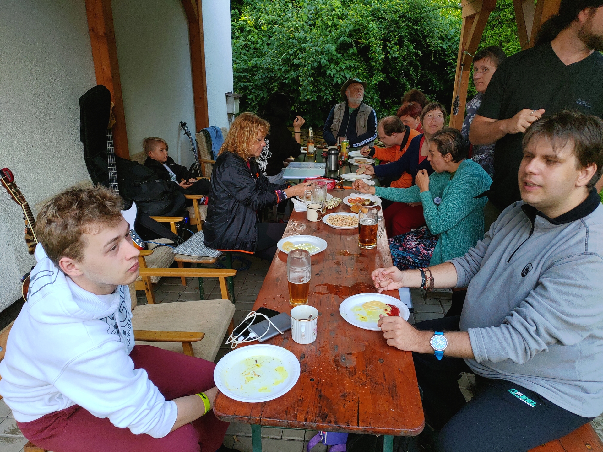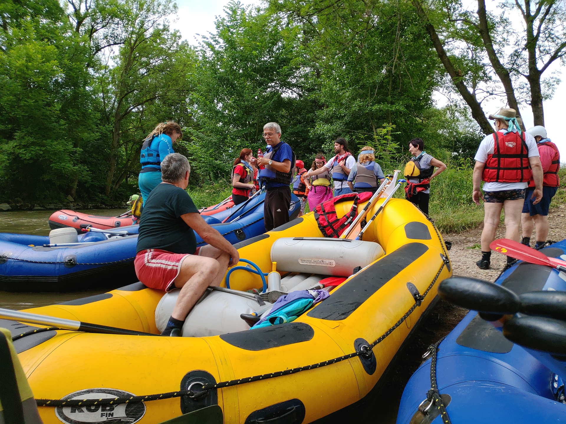 Druhý den jsme se konečně potkali s kamarády vodáky z CK Klíč. Naši dobří zmámí a bezva chlapíci se srdcem na pravém místě. S nimi se nebojíme ani do peřejí. V každém raftu byl jeden zkušený kormidelník, který si uměl poradit se všemi nástrahami nad hladinou i pod ní. První etapa byla dlouhá 8 km. Naobědvali jsme se v restauraci a znavení se vrátili zpátky do kempu. Posílilo nás grilované maso s chlebem z místní úžasné pekárny.