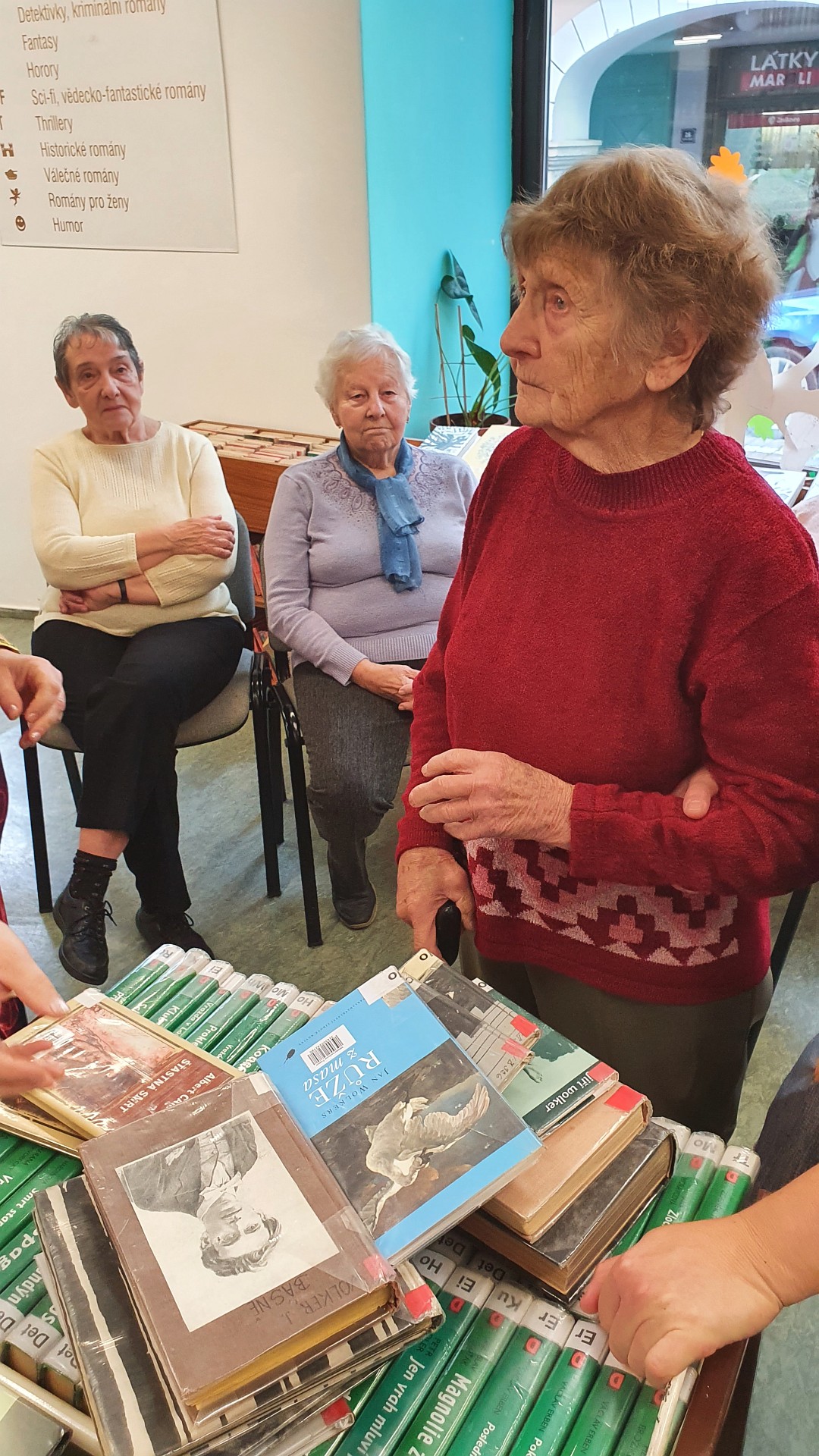 Ve středu 20. října prožily seniorky z oddělení C velice zajímavé dopoledne. Byly se totiž podívat v Městské knihovně. Pracovnice knihovny pro ně připravily prohlídku všech oddělení, povídání o historii knihovny, zajímavosti o knížkách. Klientkám stacionáře se povídání tak moc líbilo, že si domluvily další návštěvu a už teď se na ni moc těší.