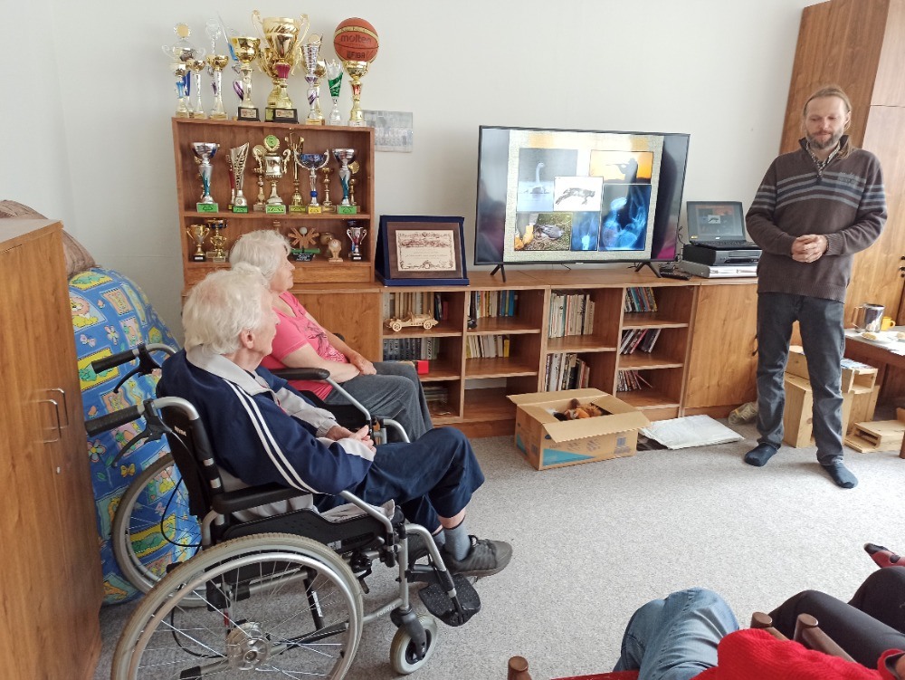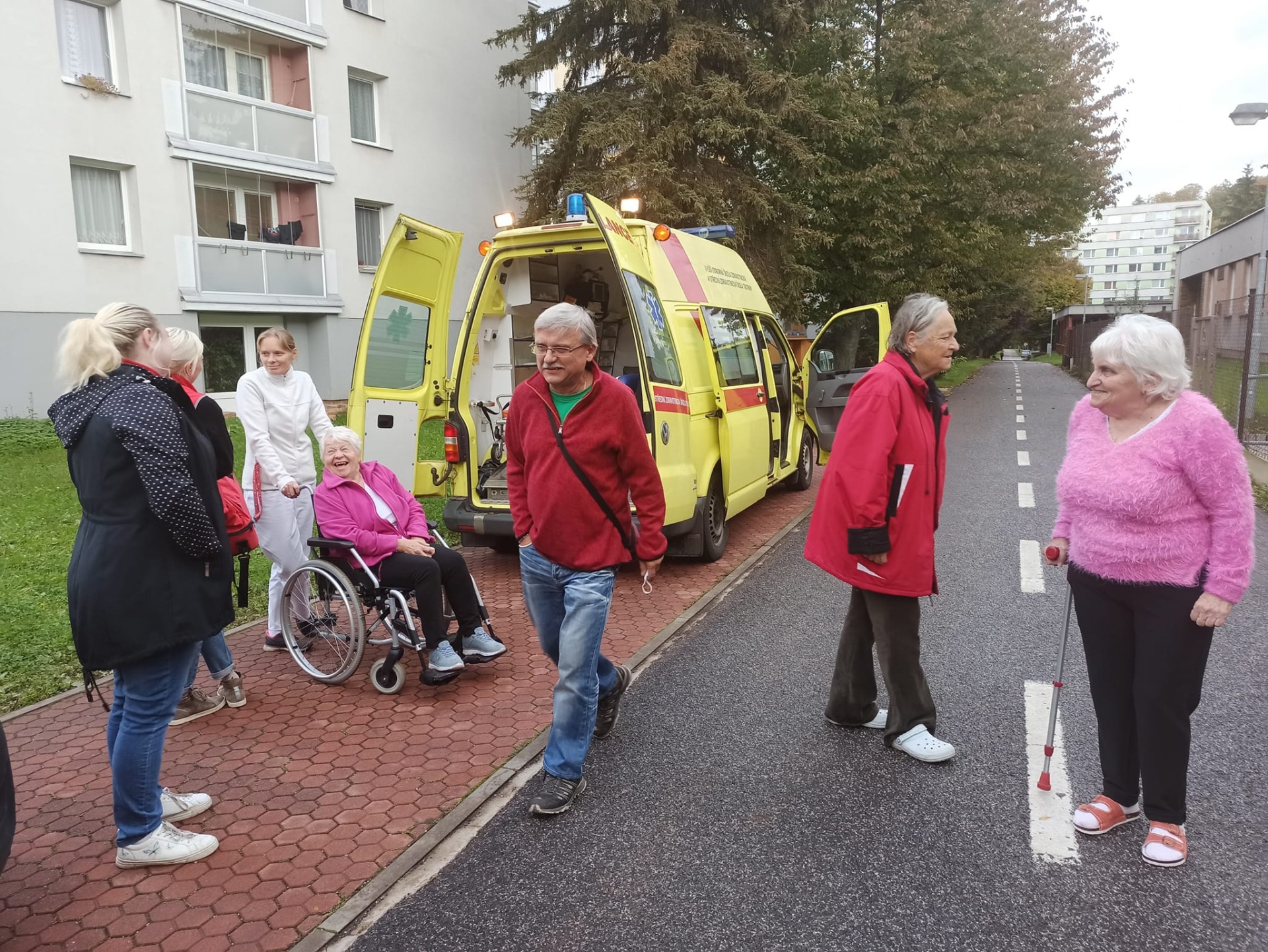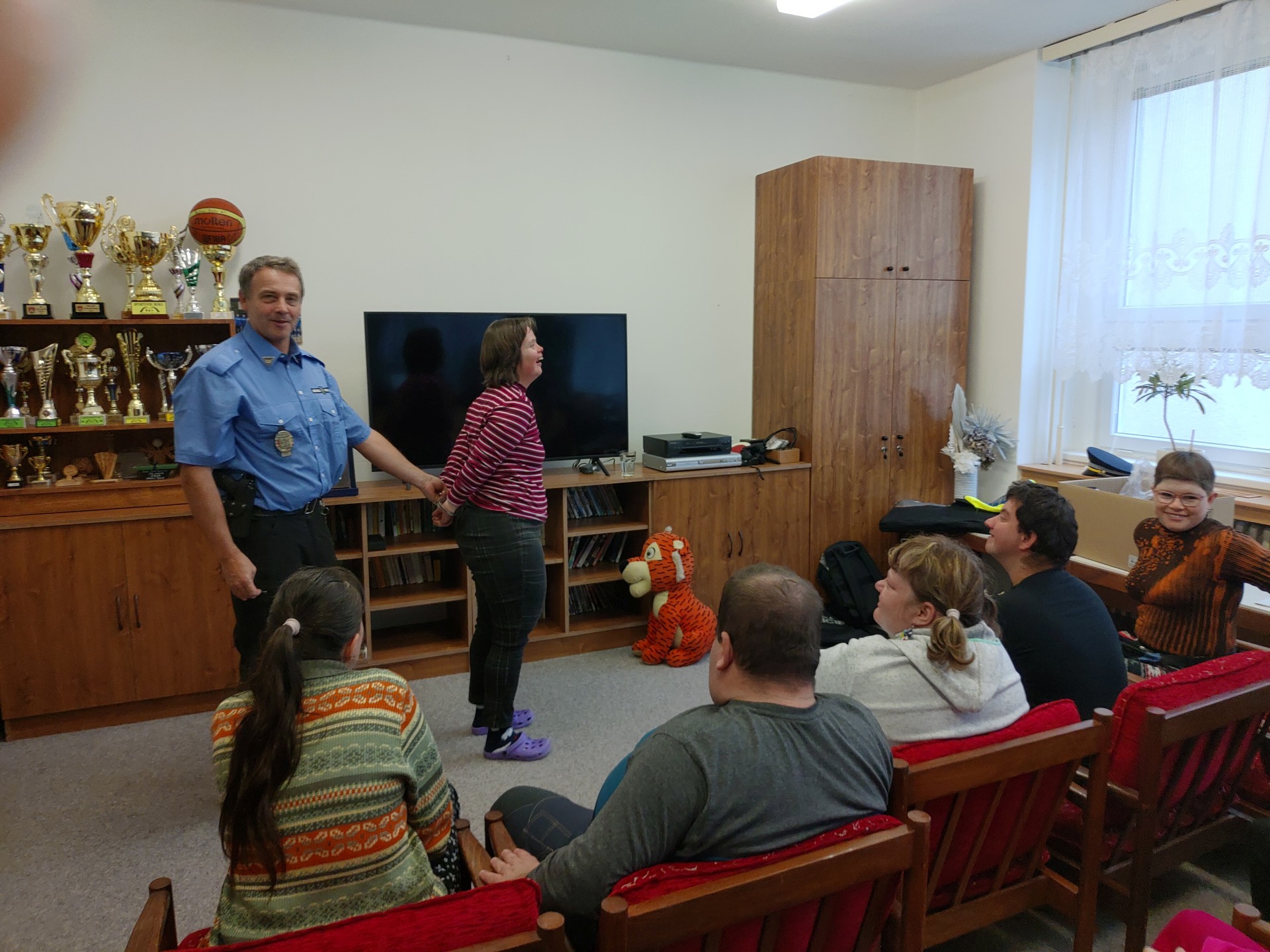 V průběhu podzimu 2022 naše klienty potěšily dvě krásné přednášky. V říjnu, v rámci Týdne sociálních služeb, navštívily stacionář paní učitelky z Vyšší odborná škola zdravotnická a Střední zdravotnická škola Trutnov. Klienti všech oddělení měli možnost prohlédnout si sanitku a pak následovala přednáška o zdraví a první pomoci. V listopadu pro zněnu navštívil stacionář preventista Městské policie Trutnov Mgr. Jan Bábik. Klienti se dozvěděli něco o práci strážníků městské policie, odvážlivci si vyzkoušeli "zatčení nanečisto", prohlédli si pouta a jiní si vyzkoušeli neprůstřelnou vestu. Velmi zajímavé byly informace o tom, jak se odchytávají zatoulaní pejsci. Součástí přednášky bylo i povídání o bezpečnosti na internetu.