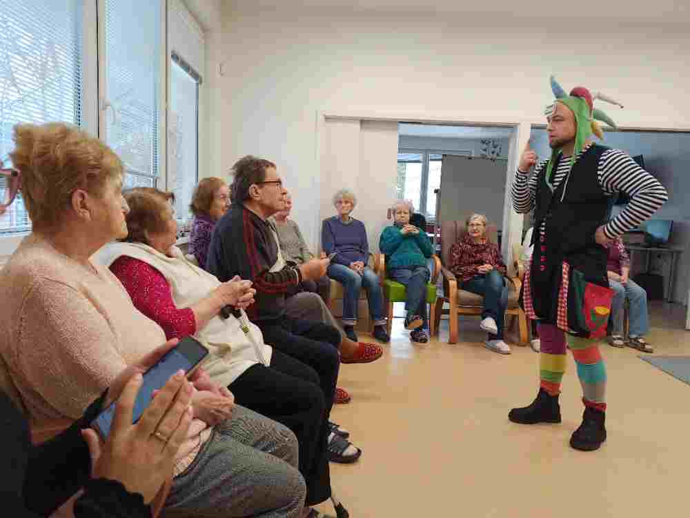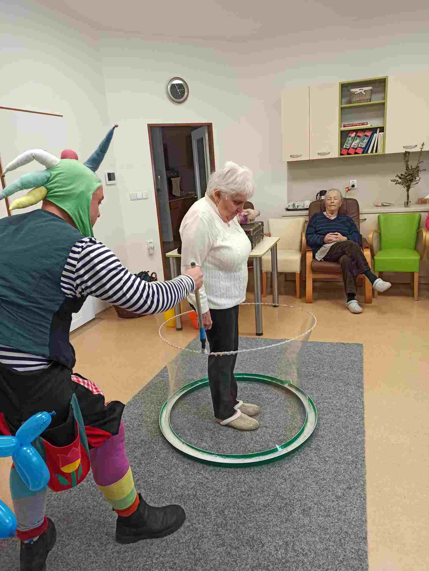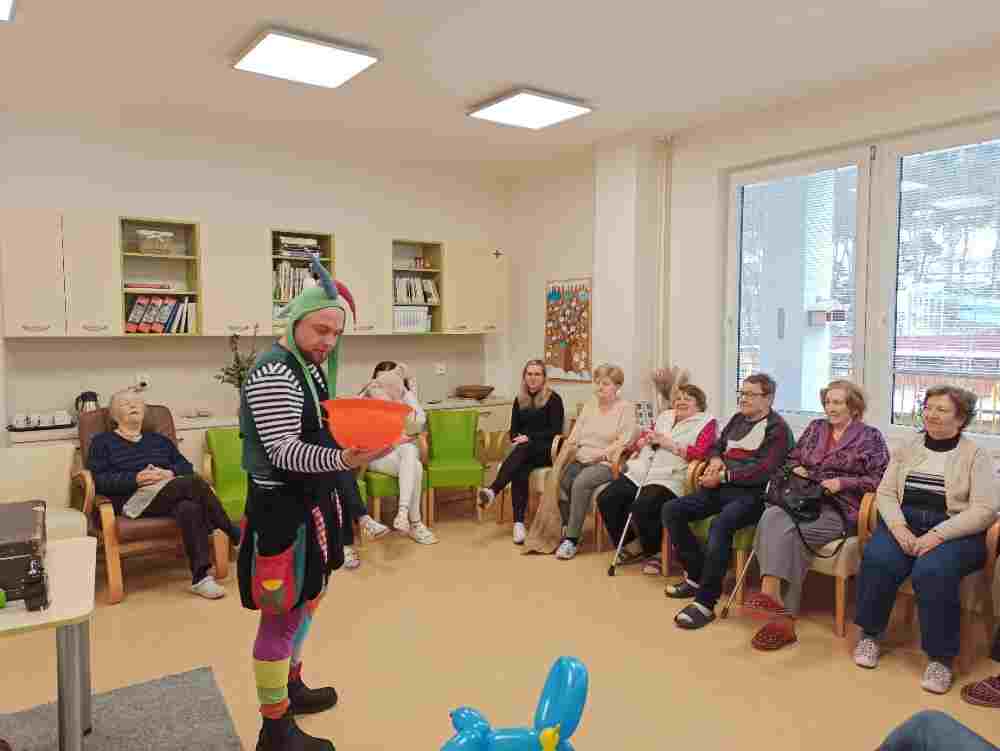 Mezi splněnými přáními byly také zážitky. Senioři chtěli shlédnout divadelní představení, vystoupení kouzelníka a dále výlet vláčkem. Ten se uskuteční až na jaře. Plánujeme se podívat do Dolců. Tak snad všechno vyjde podle našich představ. Divadelní představení bylo pro seniory překvapením, ale určitě si ho všichni moc užili. Přijel mezi nás pan Bronislav s kolegou z Broňa show a společně jsme si zazpívali hity 80. a 90. let. Dalším přáním jedné seniorky bylo divadelní představení. Toho se s velikou radostí ujal pan Jakub Skočdopole z umělecké agentury Kašpaři.cz. Kouzlil, žongloval, předvedl některé triky s kartami a zapojil do svého programu i naše seniory. Všem, kteří přispěli k veliké radosti našich seniorů moc děkujeme. Velký dík také patří nadaci Českého rozhlasu a všem, kteří kolem této nadace Ježíškova vnoučata pracují. Věříme, že i v dalších letech se budeme moci do projektu zapojit a že budou dárci stejně srdeční, jako byli doposud.