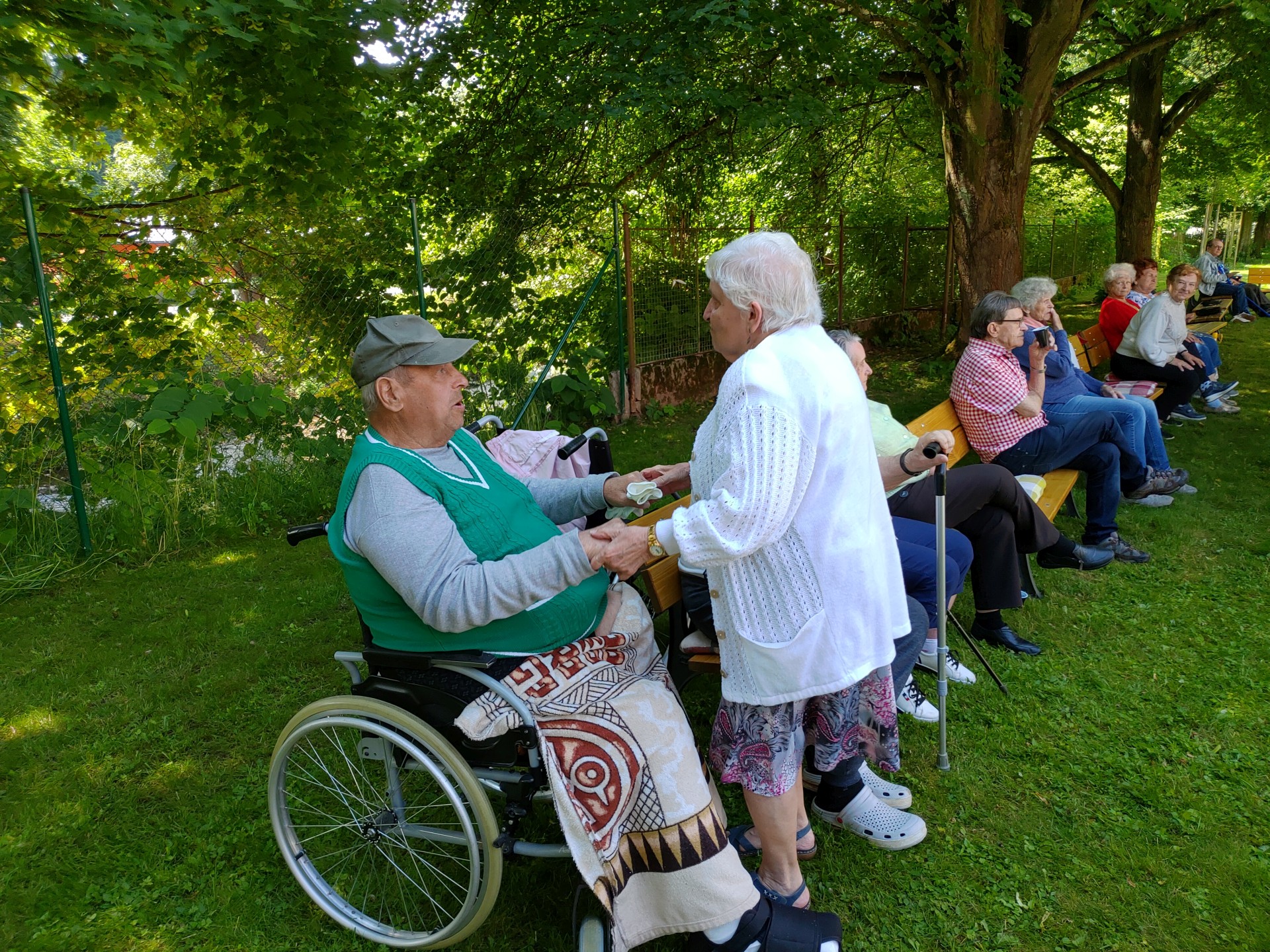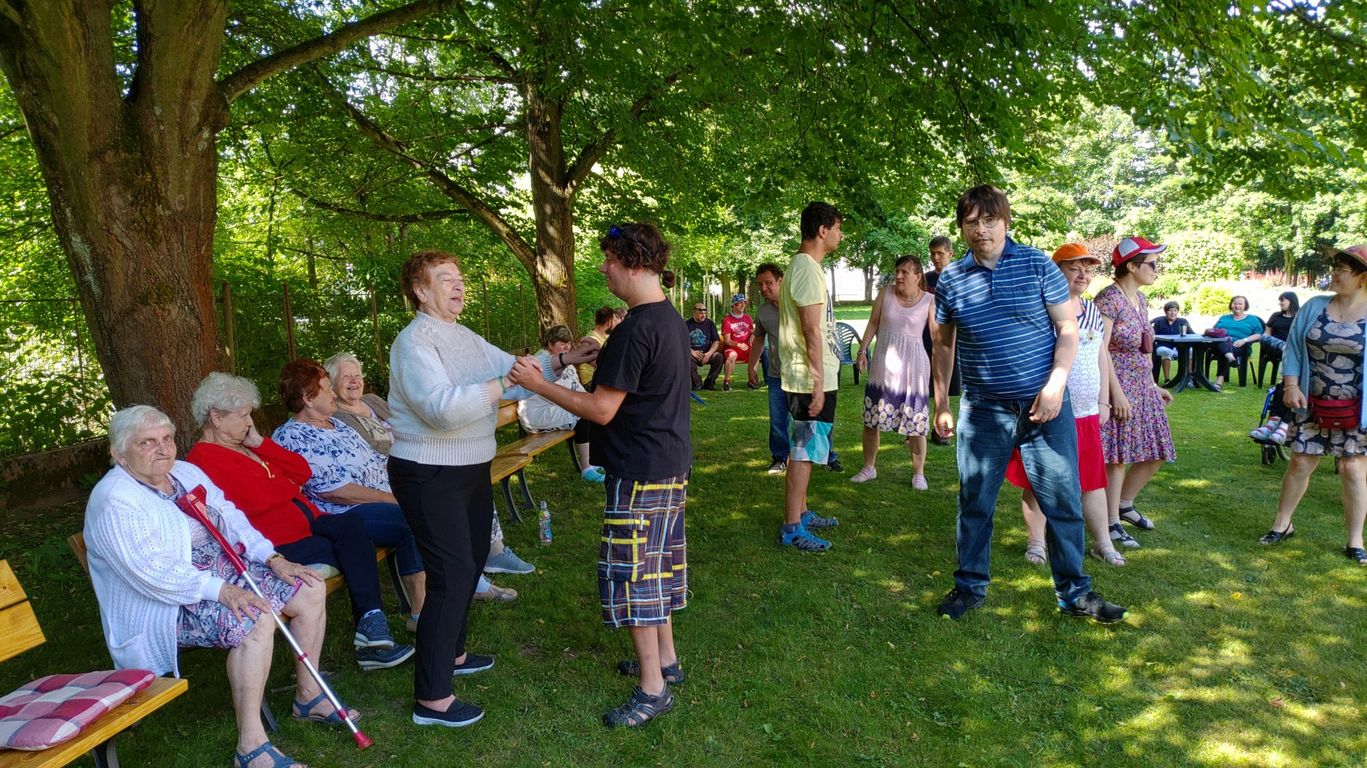 Ve čtvrtek 29. června 2023 se na naší zahradě pořádala již tradiční Zahradní slavnost. Klienti ze všech oddělení se sešli ve stínu stromů a společně si zatančili na známé písničky v podání úžasné