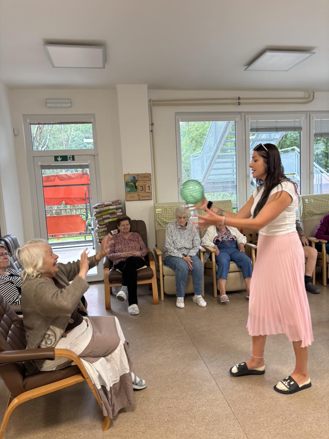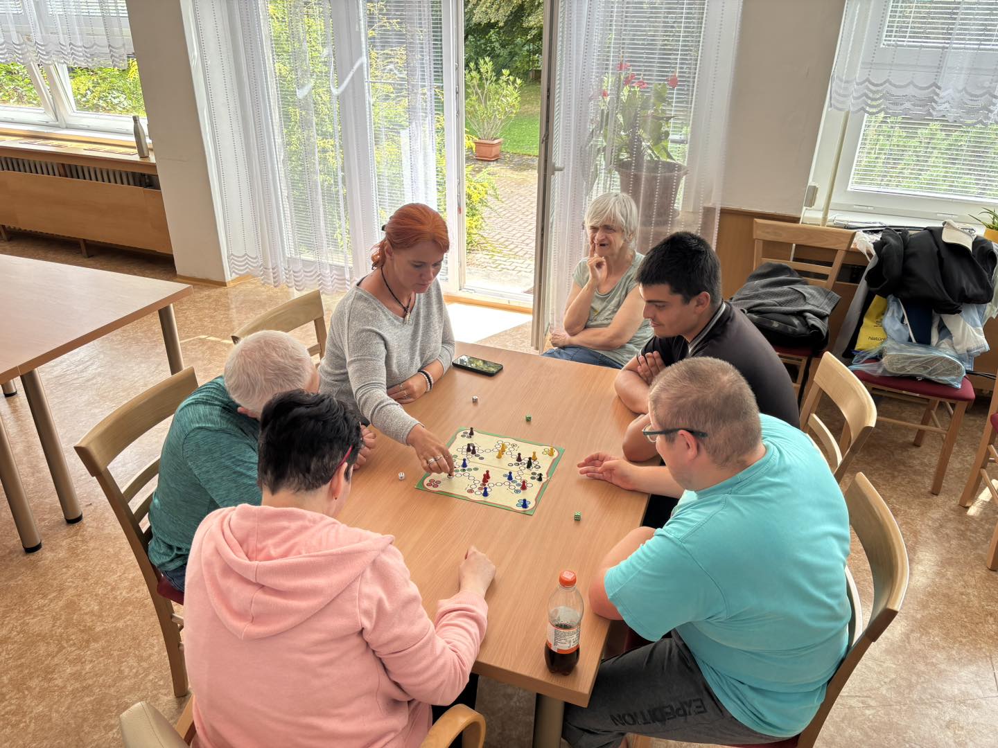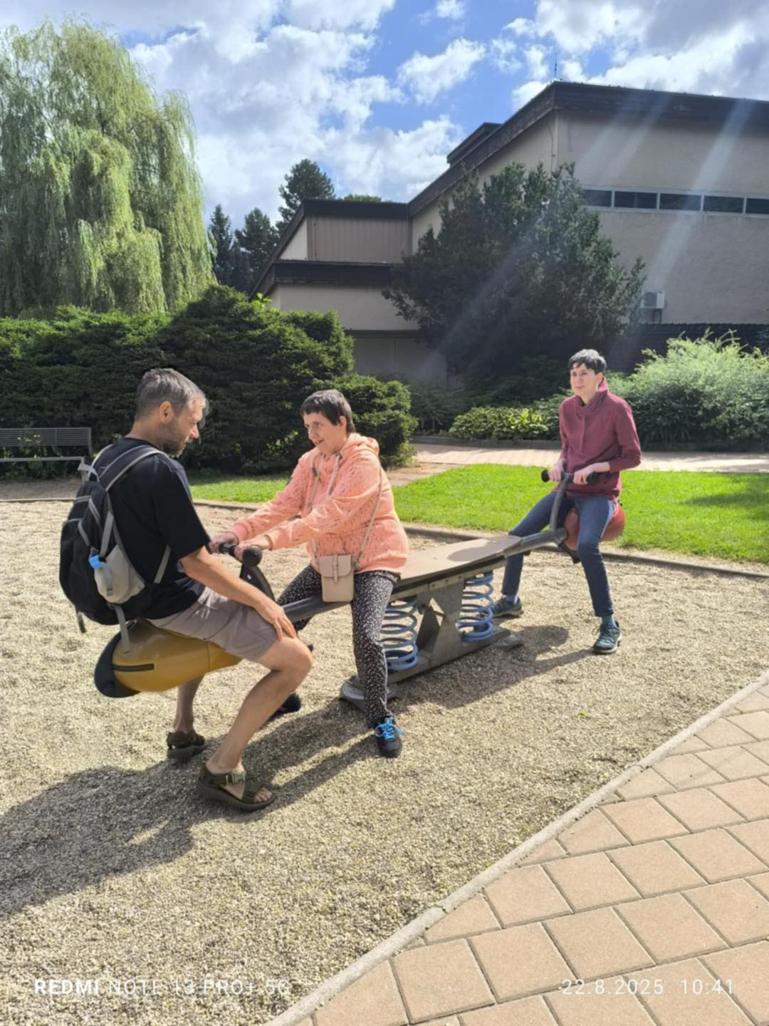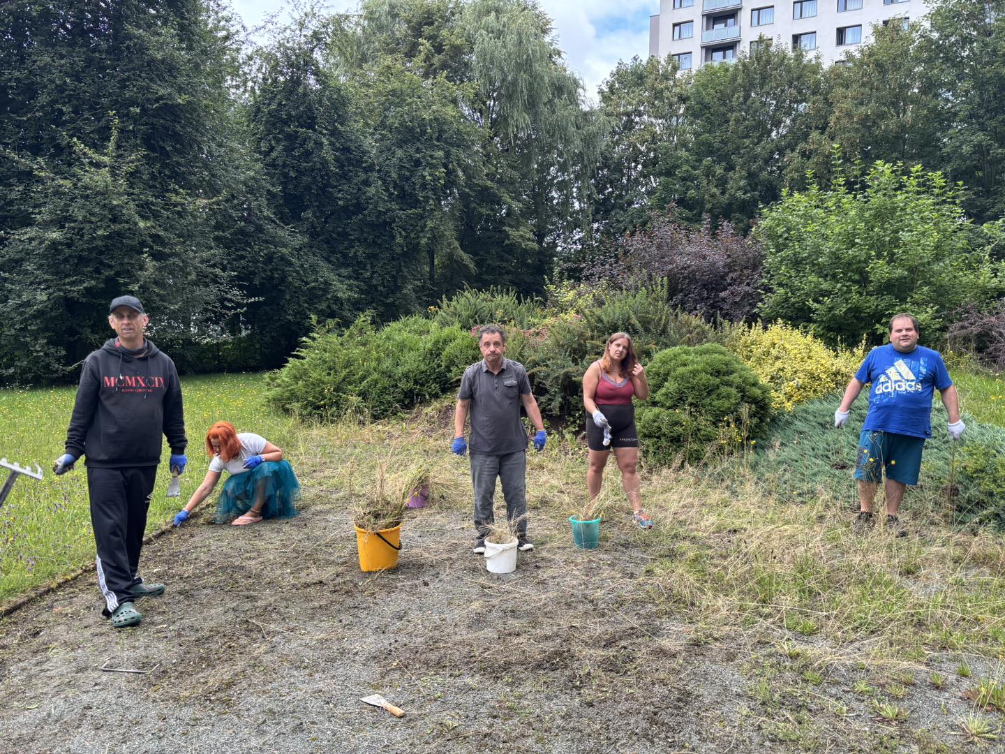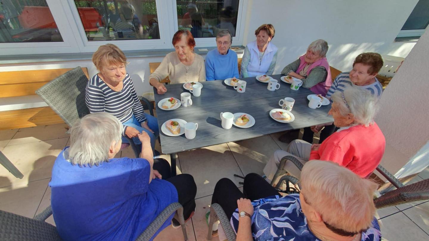 Letní měsíce jsou u nás ve stacionáři vždy obdobím radosti, pohybu a příjemných zážitků. Sluníčko nás lákalo ven a my jsme toho naplno využili. Společně jsme vyráželi na vycházky do okolí – čerstvý vzduch, teplé paprsky a příroda kolem nás dodávaly energii i dobrou náladu. K dyž nás nohy bolely, užívali jsme si sluníčka na zahradě či terase. Nechyběly ani oblíbené zastávky na zmrzlinu, které k létu neodmyslitelně patří. Na naší zahradě jsme se věnovali práci, – zalévání květin, údržba záhonků i pletí. Pohyb na čerstvém vzduchu jsme prokládali i cvičením, abychom si udrželi kondici a dobrou náladu. Důležitým byla setkání s kamarády, povídání, společné zážitky a smích.