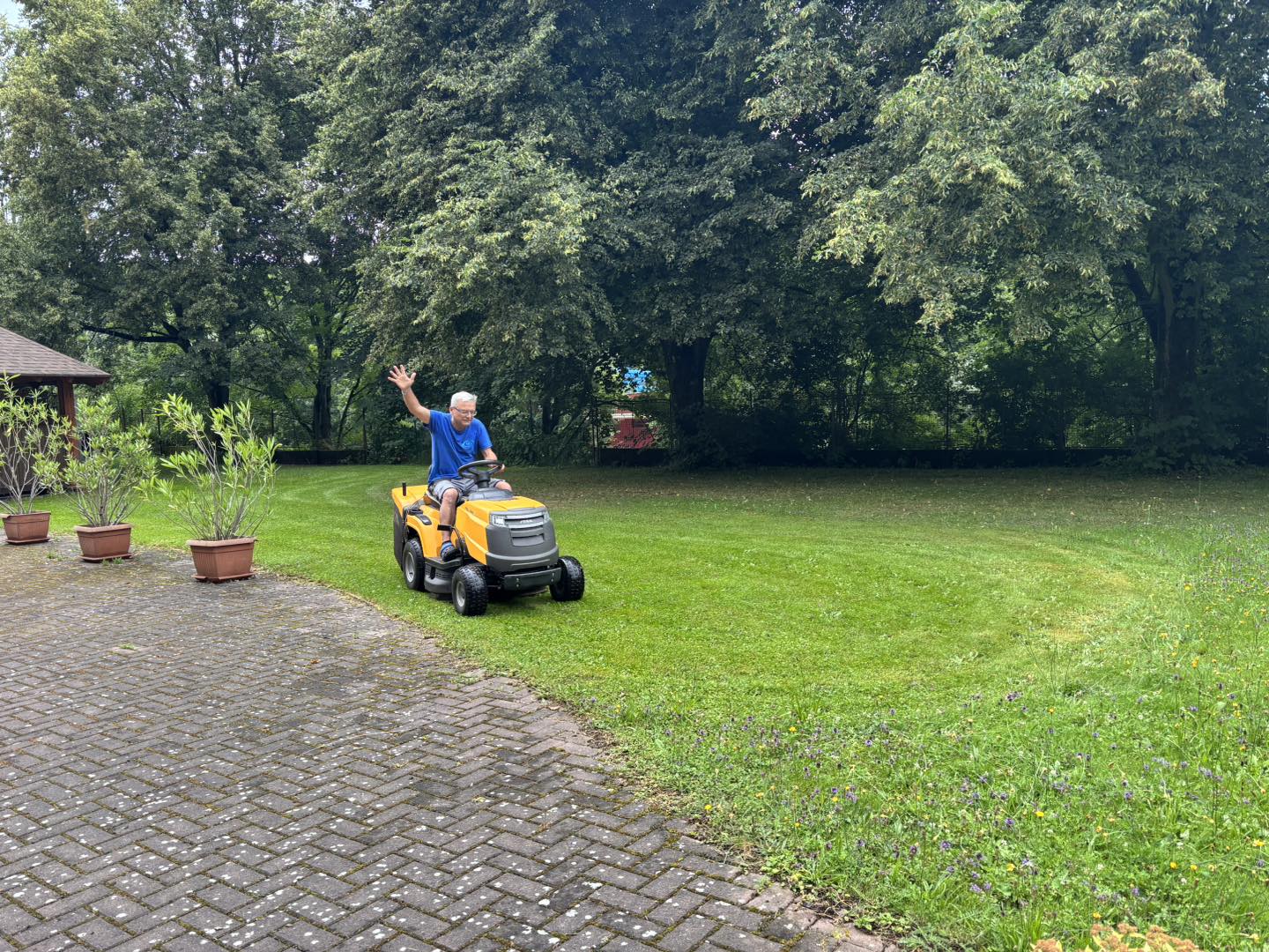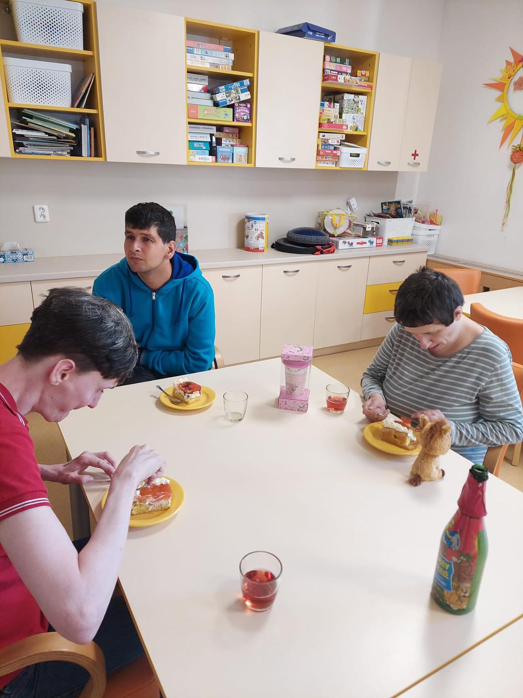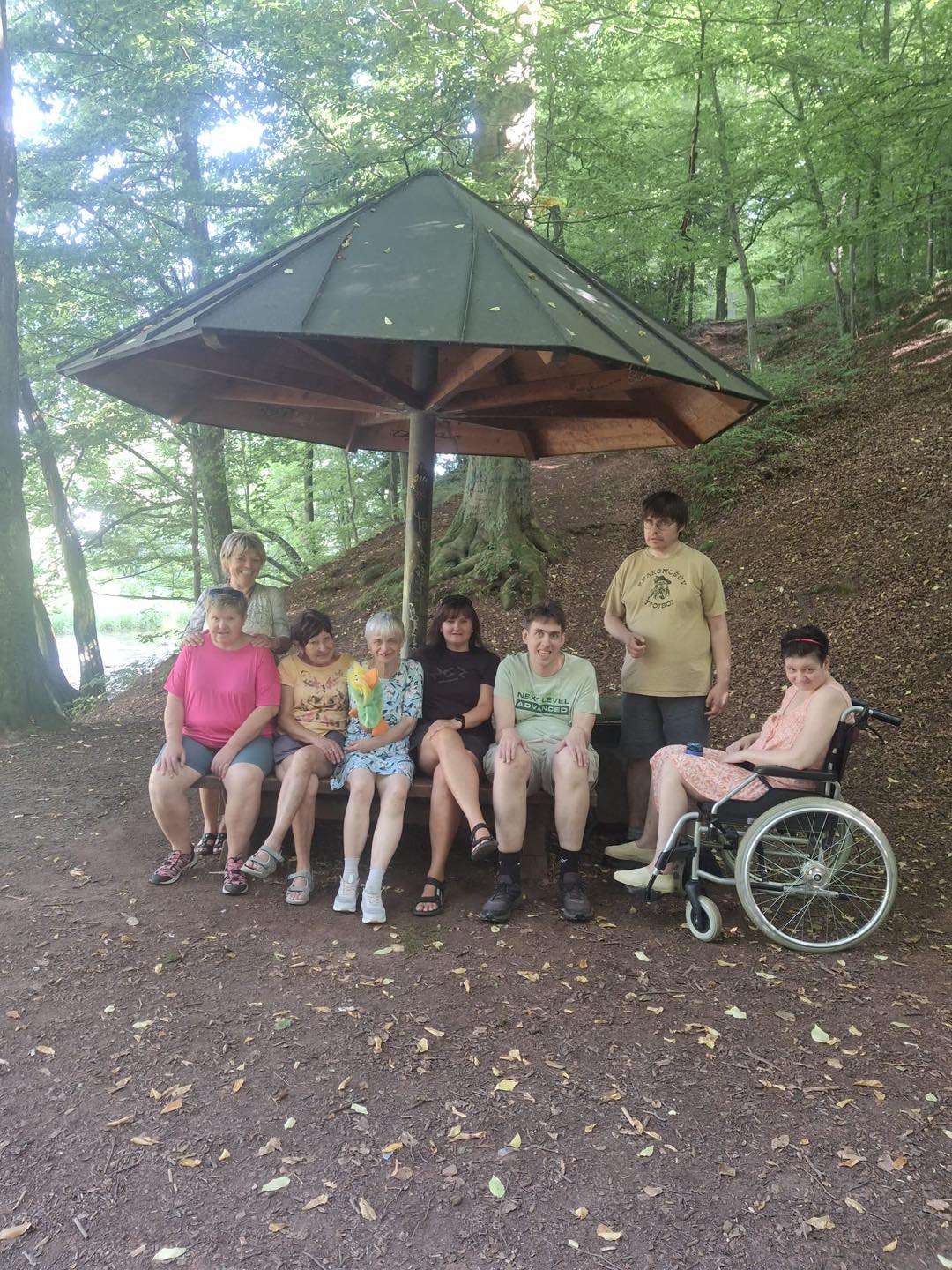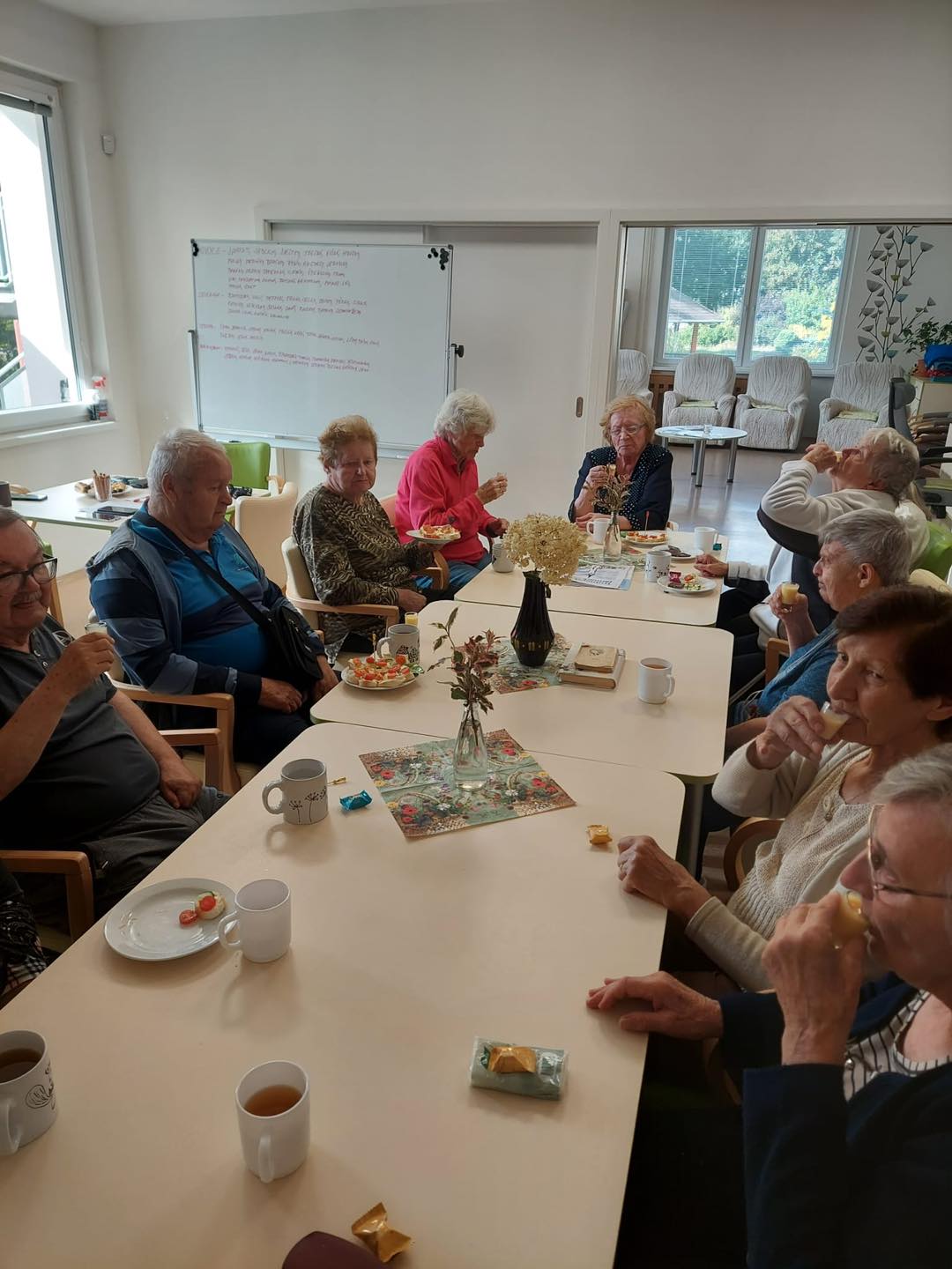 Letní měsíce jsou u nás ve stacionáři vždy obdobím radosti, pohybu a příjemných zážitků. Sluníčko nás lákalo ven a my jsme toho naplno využili. Společně jsme vyráželi na vycházky do okolí – čerstvý vzduch, teplé paprsky a příroda kolem nás dodávaly energii i dobrou náladu. K dyž nás nohy bolely, užívali jsme si sluníčka na zahradě či terase. Nechyběly ani oblíbené zastávky na zmrzlinu, které k létu neodmyslitelně patří. Na naší zahradě jsme se věnovali práci, – zalévání květin, údržba záhonků i pletí. Pohyb na čerstvém vzduchu jsme prokládali i cvičením, abychom si udrželi kondici a dobrou náladu. Důležitým byla setkání s kamarády, povídání, společné zážitky a smích.