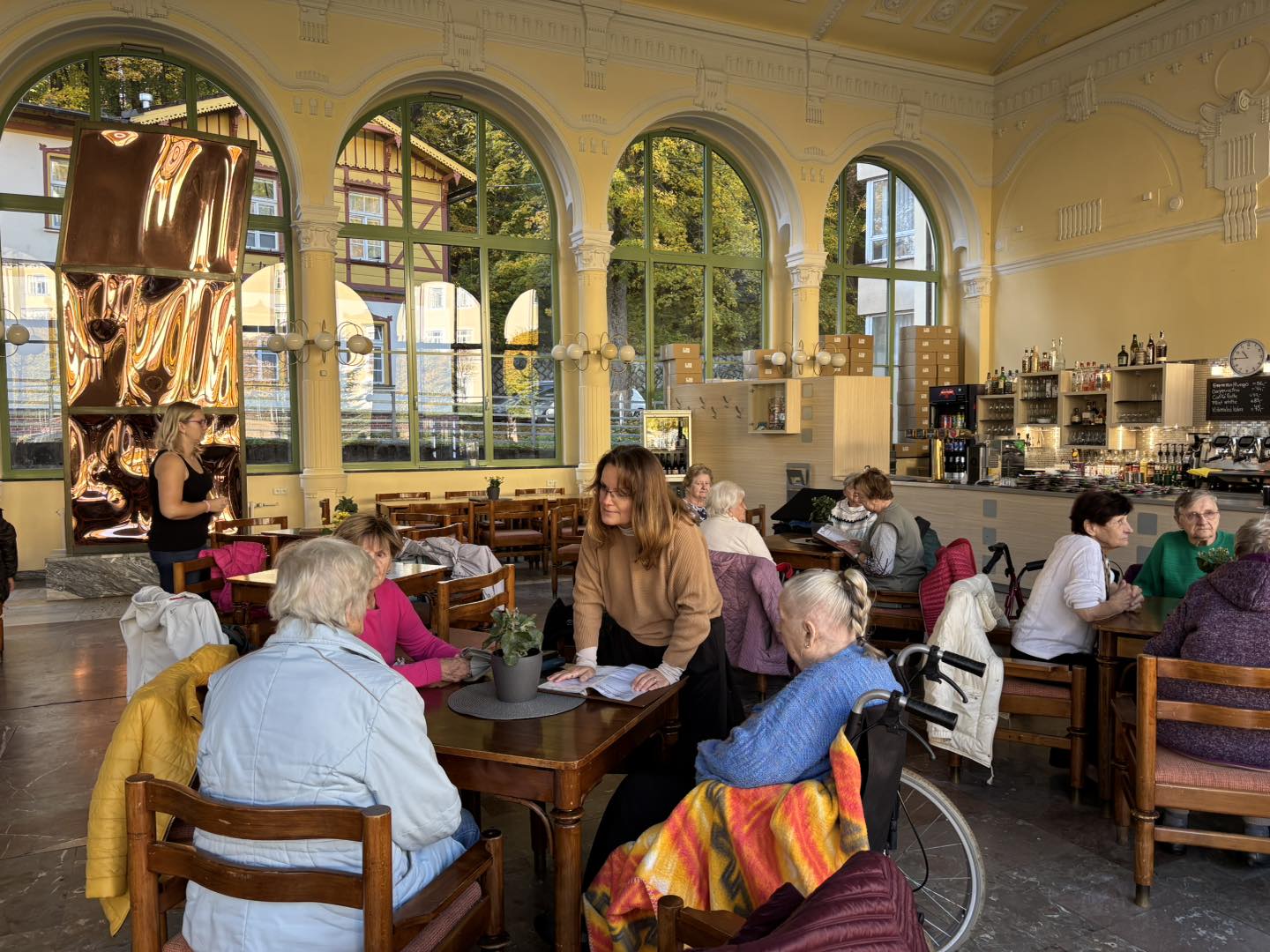 Slunečné říjnové dopoledne se stalo ideálním časem pro výlet našich seniorů do Janských Lázní. Ochutnali vodu z Janova pramene, prošli se kolonádou a procházku zakončili kávou a teplou lázeňskou oplatkou v místní kavárně. Není nic lepšího, než pěkný výlet s kamarády.