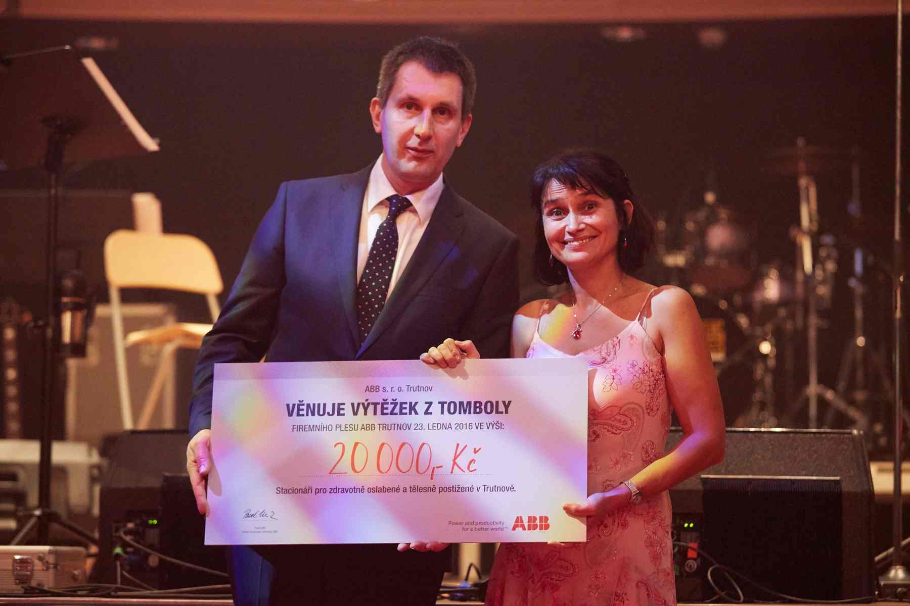 V sobotu 23.1.2016 nás trutnovská firma ABB s.r.o Trutnov potěšila pozváním na svůj již 4. ples. Ve společenském centru Uffo v Trutnově bylo úplně plno. Na stoly jsme vyrobili malé dárečky, které si odnášeli zaměstnanci a ostatní hosté domů. Po vyprodání všech losů v tombole se spočítala celková tržba a výtěžek nám na symbolickém šeku předal pan ředitel firmy pan Pavel Mík. Všem, kteří přispěli moc děkujeme a jsme rádi, že se toto pozvání stalo tradicí.