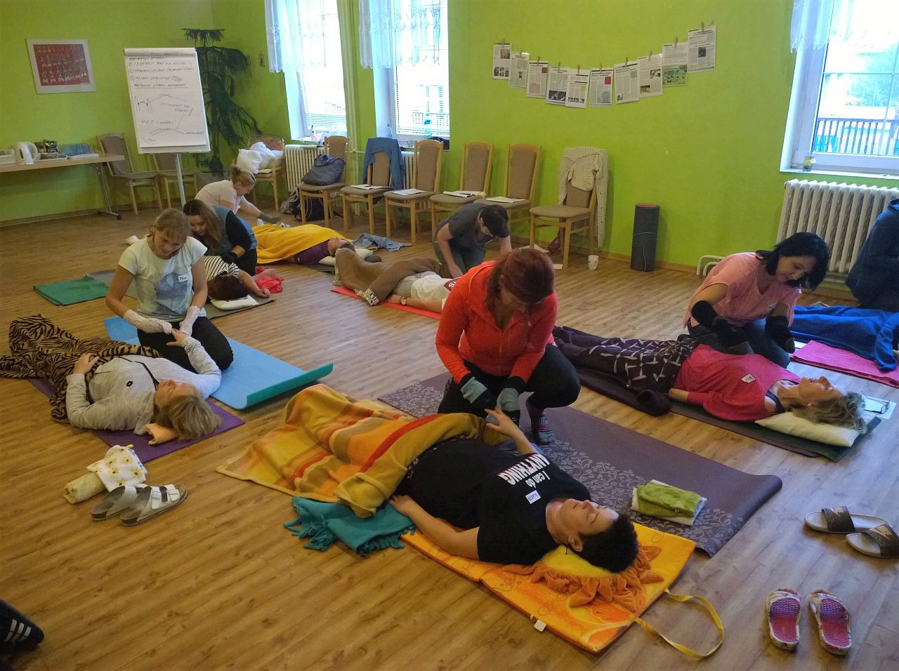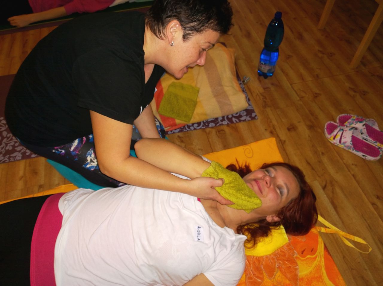 Naše pracovnice se seznámily s významem doteku v péči o své klienty, jak pracovat s biografickou anamnézou a v neposlední řadě o tom, jak správně navázat komunikaci (i neverbální) s klientem. V praktické části kurzu si vyzkoušely a osvojovaly správné techniky somatické, vibrační a vestibulární stimulace. Prováděli zklidňující i povzbuzující stimulaci, polohování do "hnízd", mikropolohování, nacvičovaly kontaktní dýchání a masáž stimulující dýchání. Vše probíhalo pod vedením a kontrolou zkušené lektorky, která vždy ráda zodpověděla všechny případné dotazy.