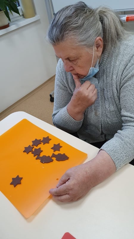 Klienti pracovali, trénovali paměť, pekli, vařili, nacvičovali domácí a sebeobslužné činnosti, cvičili a chodili na krátké vycházky do přírody. Podíleli se na podzimní a vánoční výzdobě stacionáře. Samozřejmě bylo také dostatek času na společné povídání, hraní her a plánování dalších aktivit.