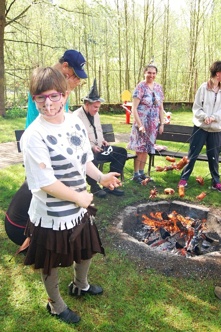 Odměnou nám všem byl pořádný opečený buřt na ohni. Nechyběla pravá táboráková nálada při kytarách a zpěvu. Nakonec jsme tancovali a rejdili všichni v maskách i bez nich.