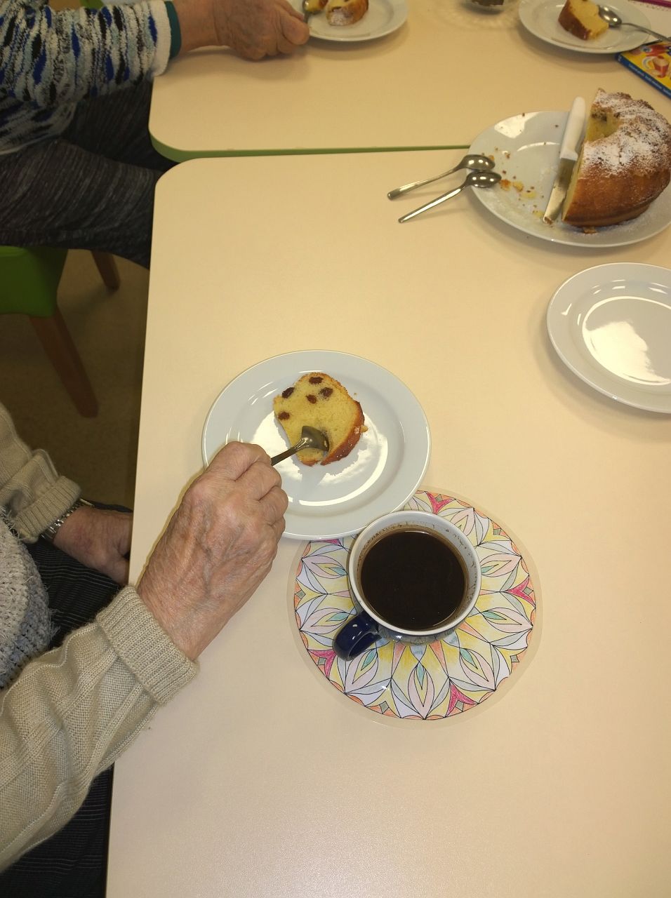 Sluníčko se schovalo za mraky, teplota klesla právě pod ten bod, kdy už se nedá příjemně sedět venku na terase, ale seniorům z oddělení C to nevadí. Rozhodli se totiž, že si sychravé podzimní dny zpříjemní pečením moučníků k odpolední kávě. A tak si občas pochutnají na perníku, bábovce nebo jiné sladkosti.