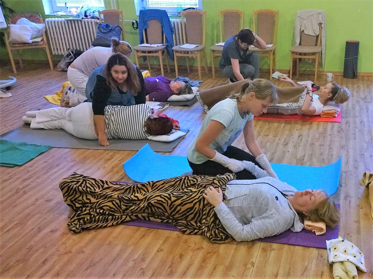 Naše pracovnice se seznámily s významem doteku v péči o své klienty, jak pracovat s biografickou anamnézou a v neposlední řadě o tom, jak správně navázat komunikaci (i neverbální) s klientem. V praktické části kurzu si vyzkoušely a osvojovaly správné techniky somatické, vibrační a vestibulární stimulace. Prováděli zklidňující i povzbuzující stimulaci, polohování do "hnízd", mikropolohování, nacvičovaly kontaktní dýchání a masáž stimulující dýchání. Vše probíhalo pod vedením a kontrolou zkušené lektorky, která vždy ráda zodpověděla všechny případné dotazy.